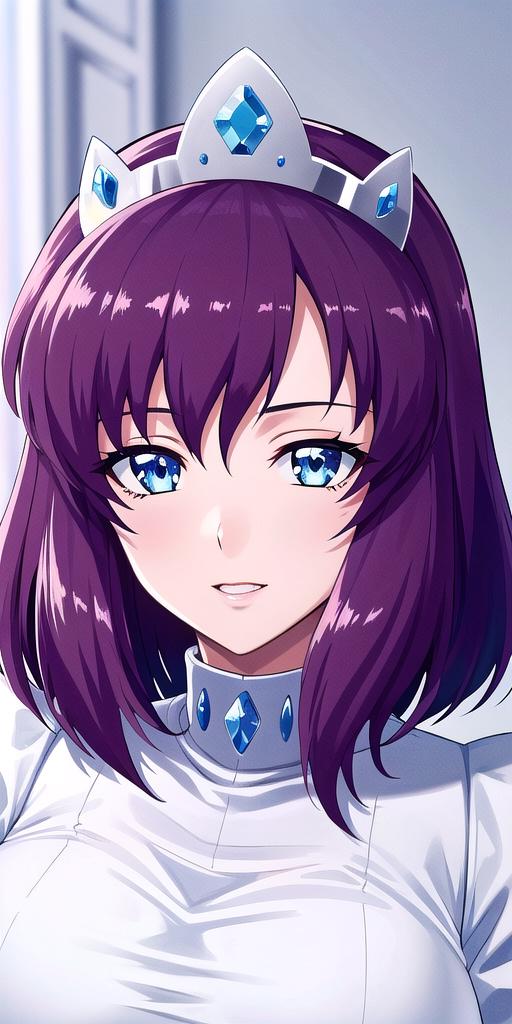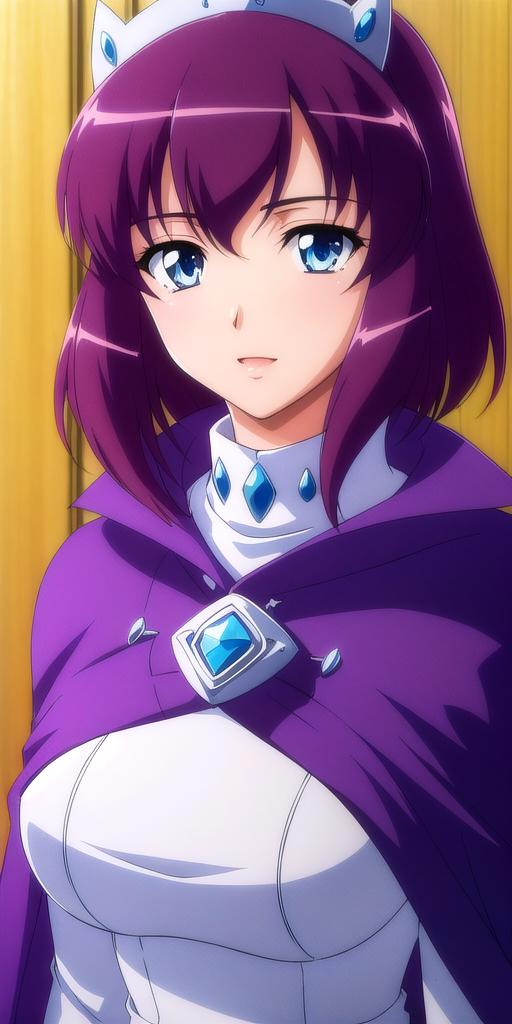 • White_armored_dress_Blue_cape_Tiara: her armored dress.
