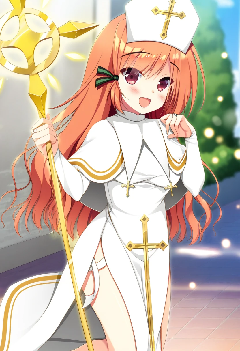 priest,priestess,nun,cross print,pelvic curtain,nurse cap,white capelet,side slit,white bridal gauntlets,