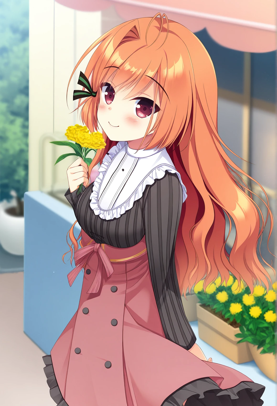 fuuga himeno,striped hair ribbon,