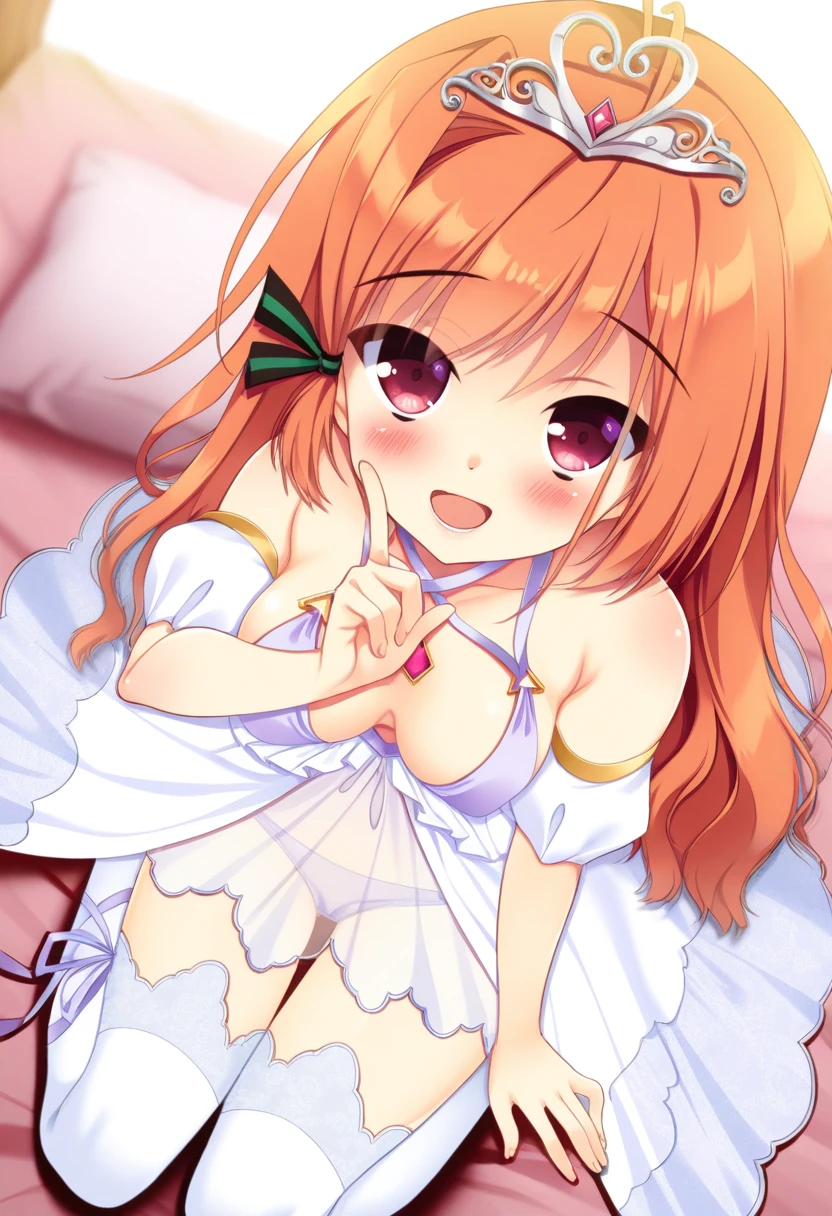 white babydoll,two-tone babydoll,detached sleeves,lace trim,frilled thighhighs,grey tiara,tiara,white thighhighs,leg ribbon,see-through,purple panties,jewelry,