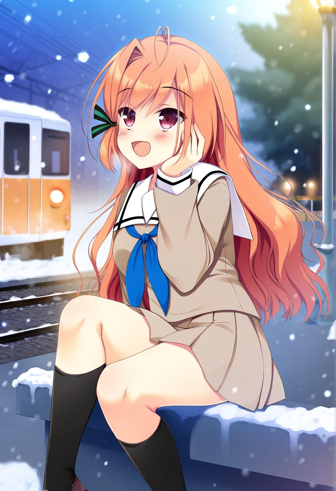 school uniform,serafuku,blue sailor collar,pleated skirt,brown skirt,