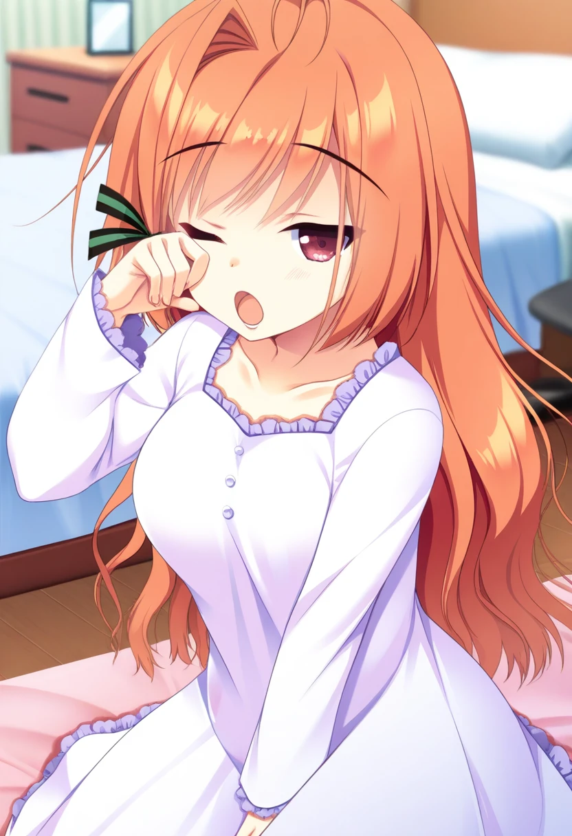fuuga himeno,striped hair ribbon,校服