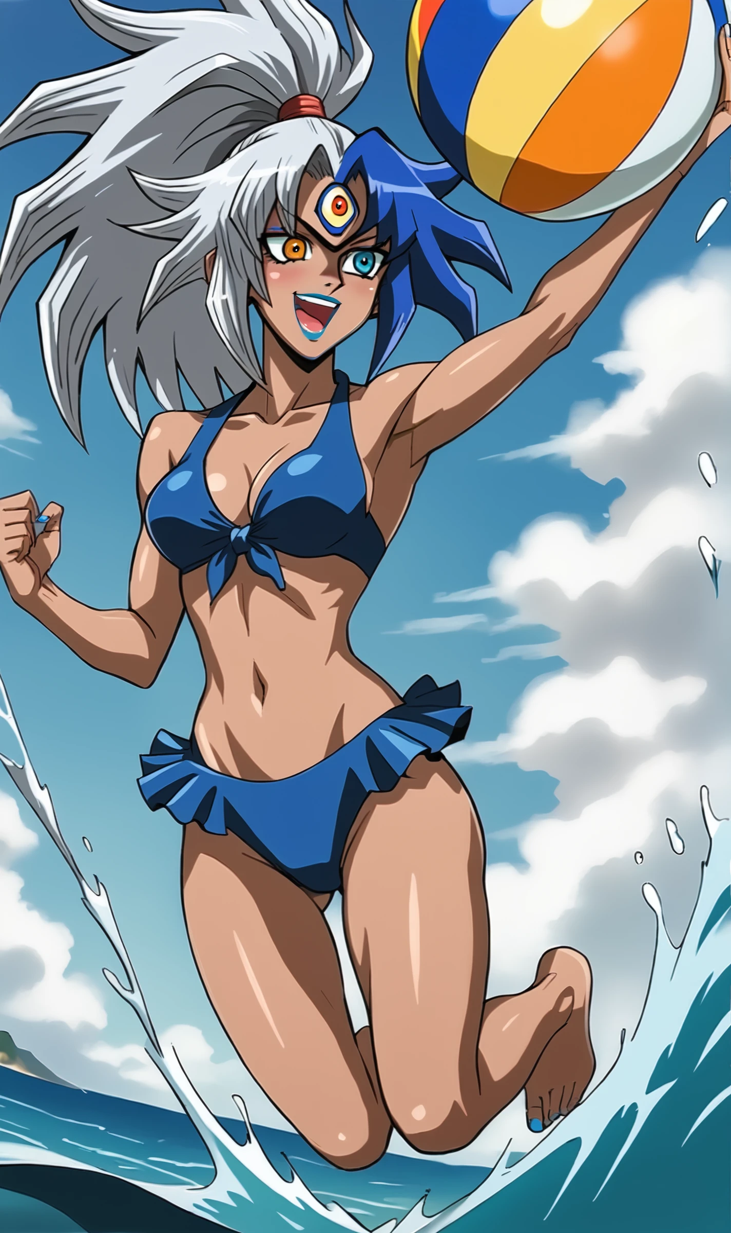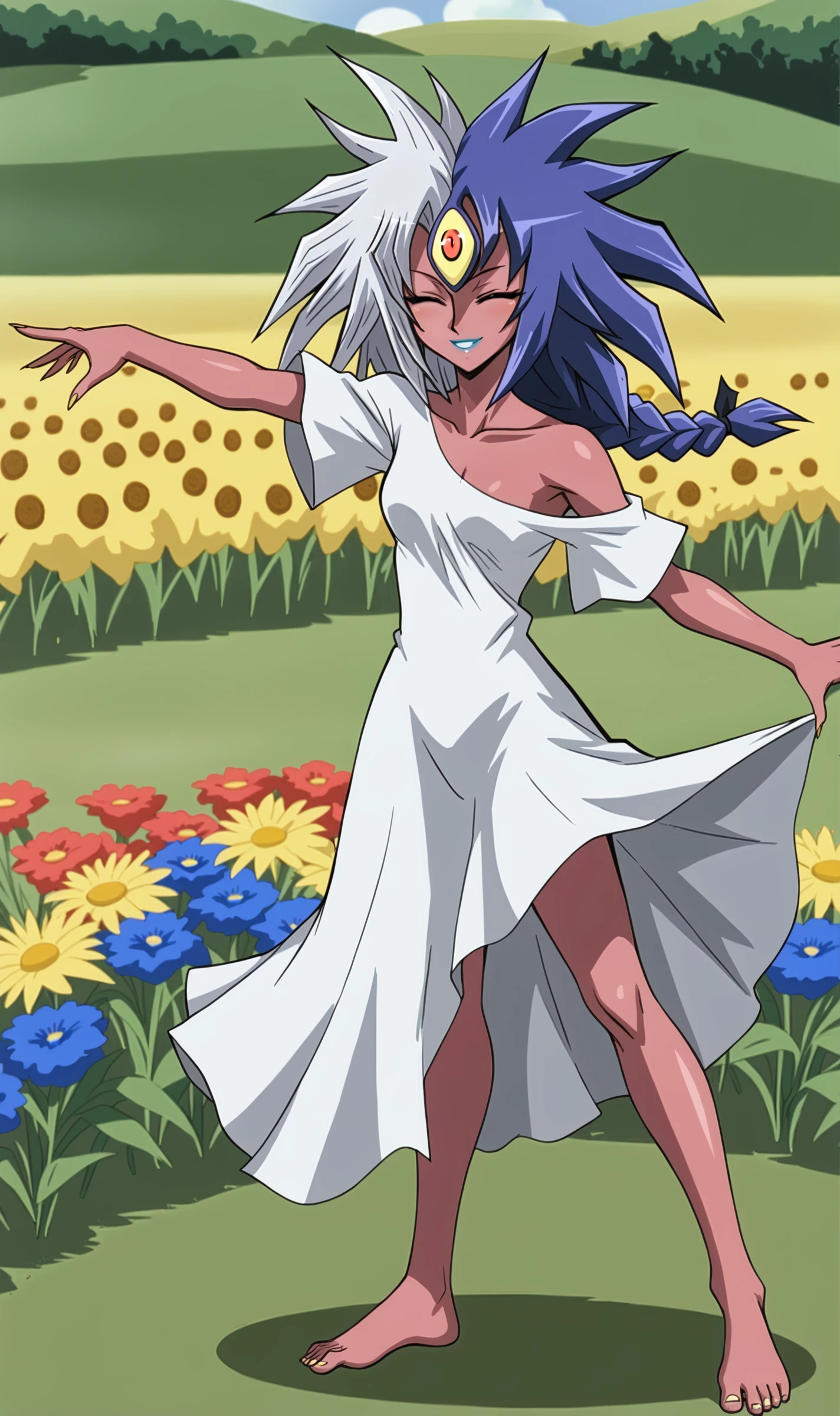 Full body features-'demon body, demon wings, split-color hair, messy hair, short hair, third eye, lipstick, facial markings, heterochromia'