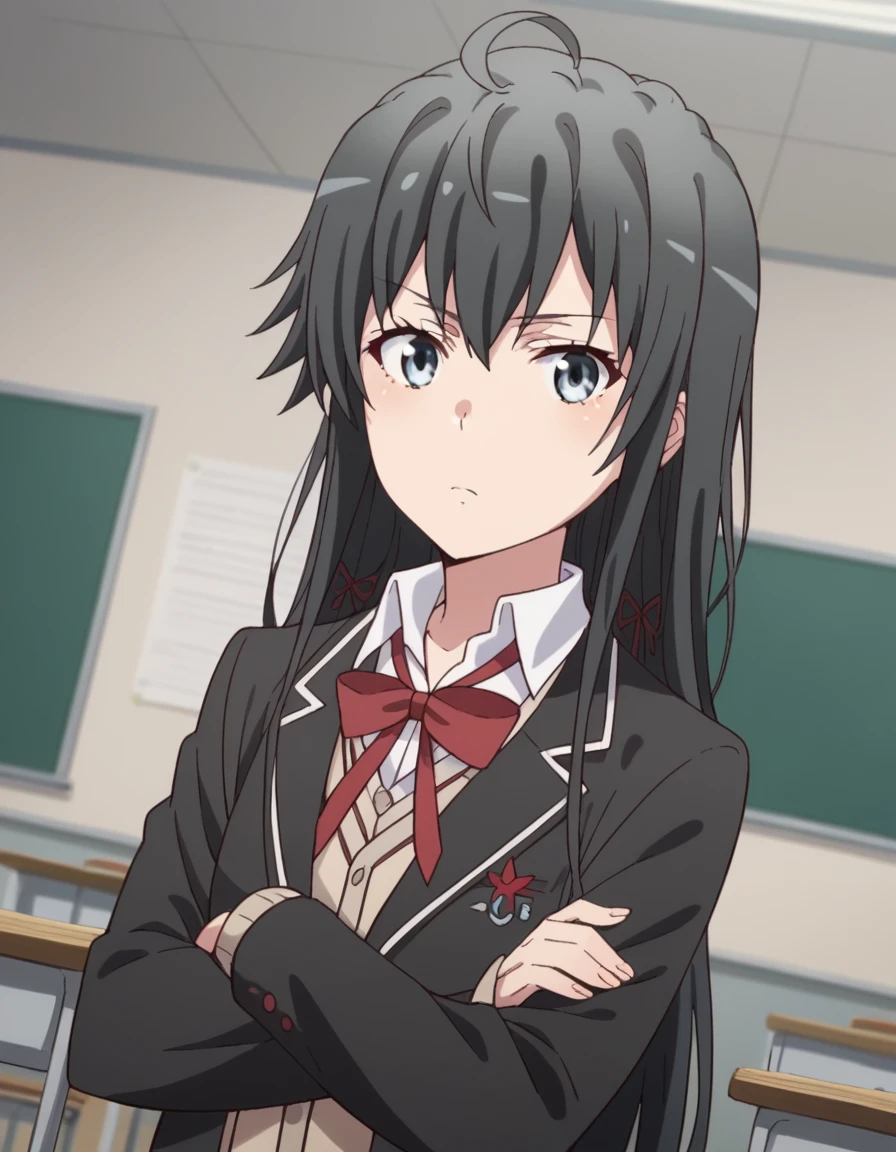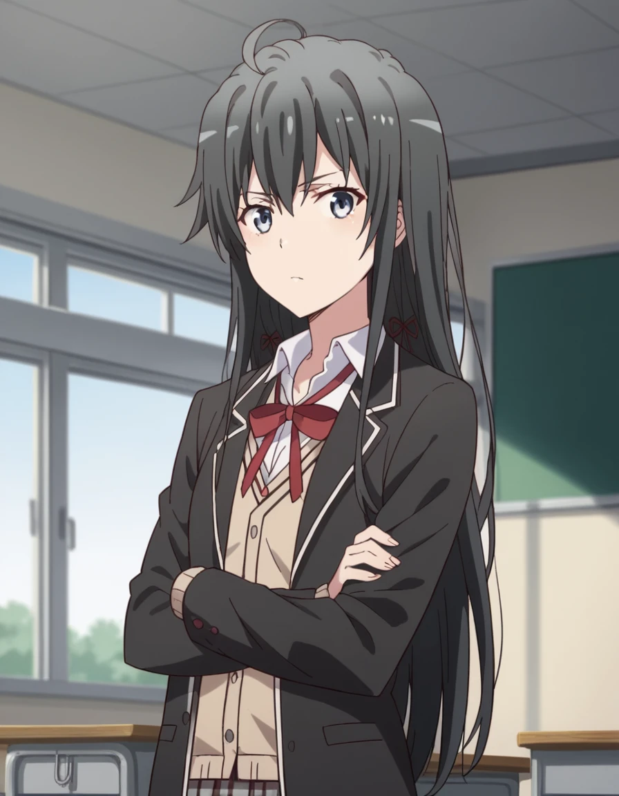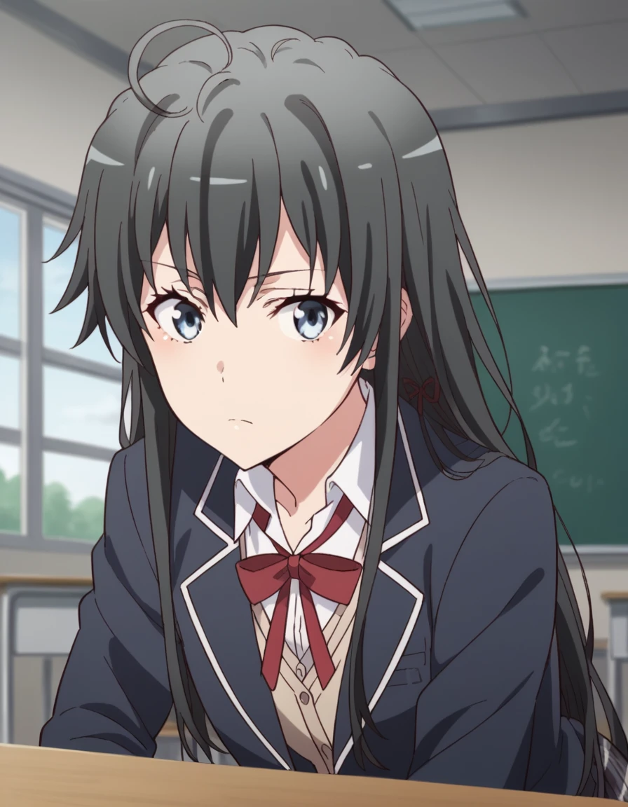 yukino yukinoshita, black hair, blue eyes, long hair, ahoge,
