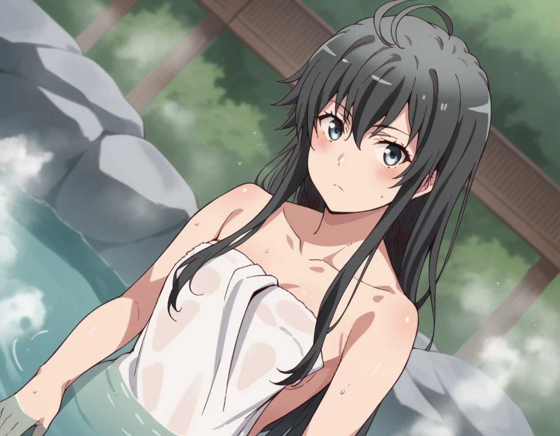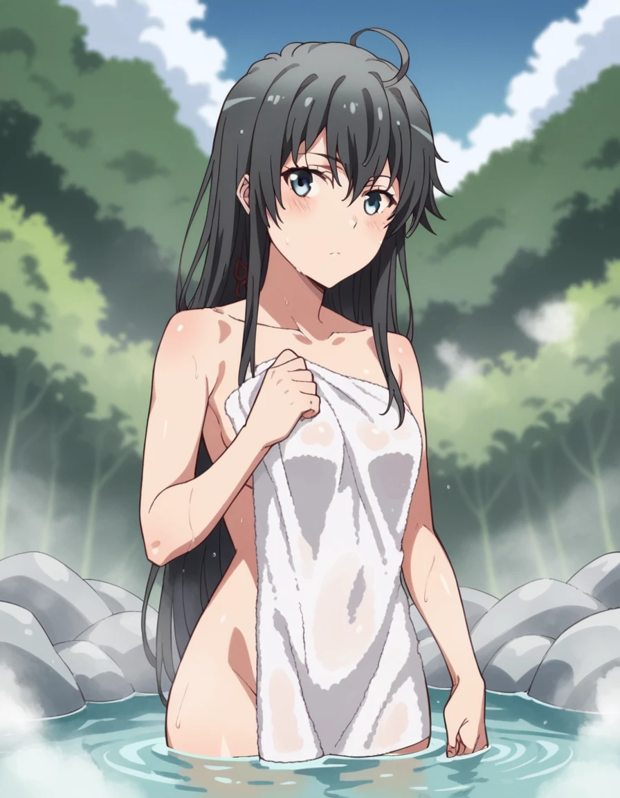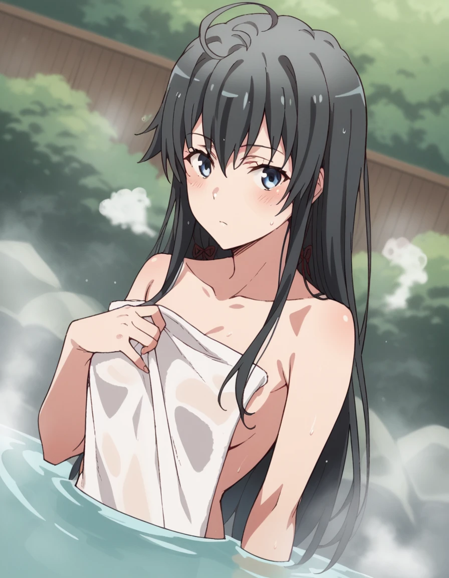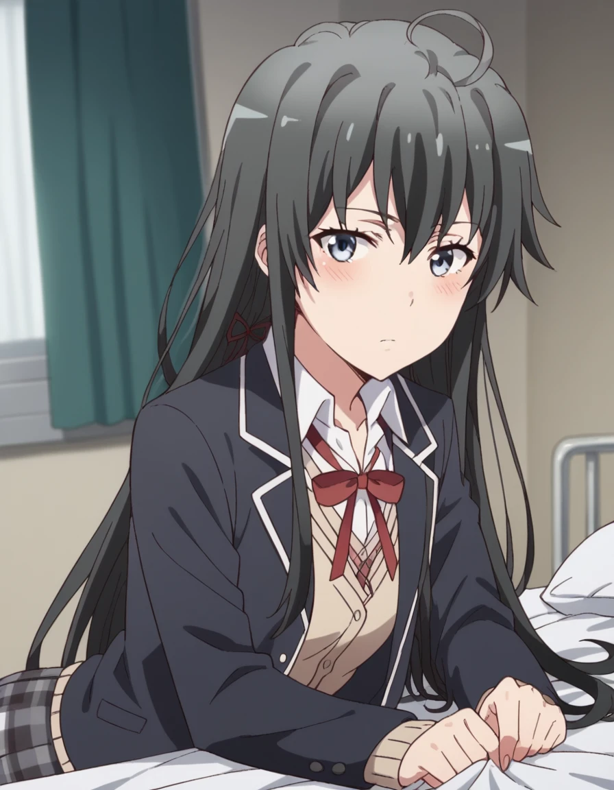yukino yukinoshita, black hair, blue eyes, long hair, ahoge,