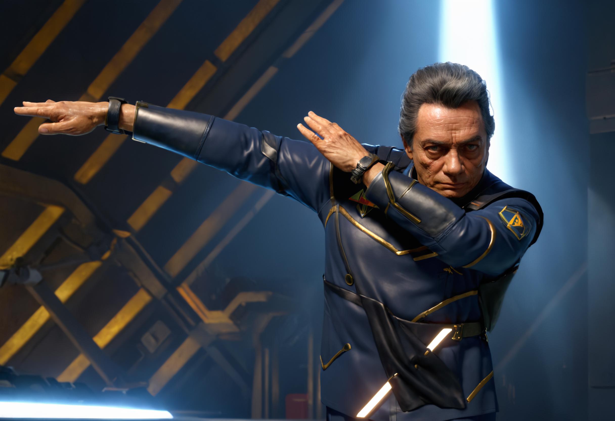 This model isn't particularly versatile, as he virtually always appeared in his uniform and rarely cracked a smile! May generate glasses a lot so add 'glasses' to negative if needed. Based on 20 enhanced captures from the series.