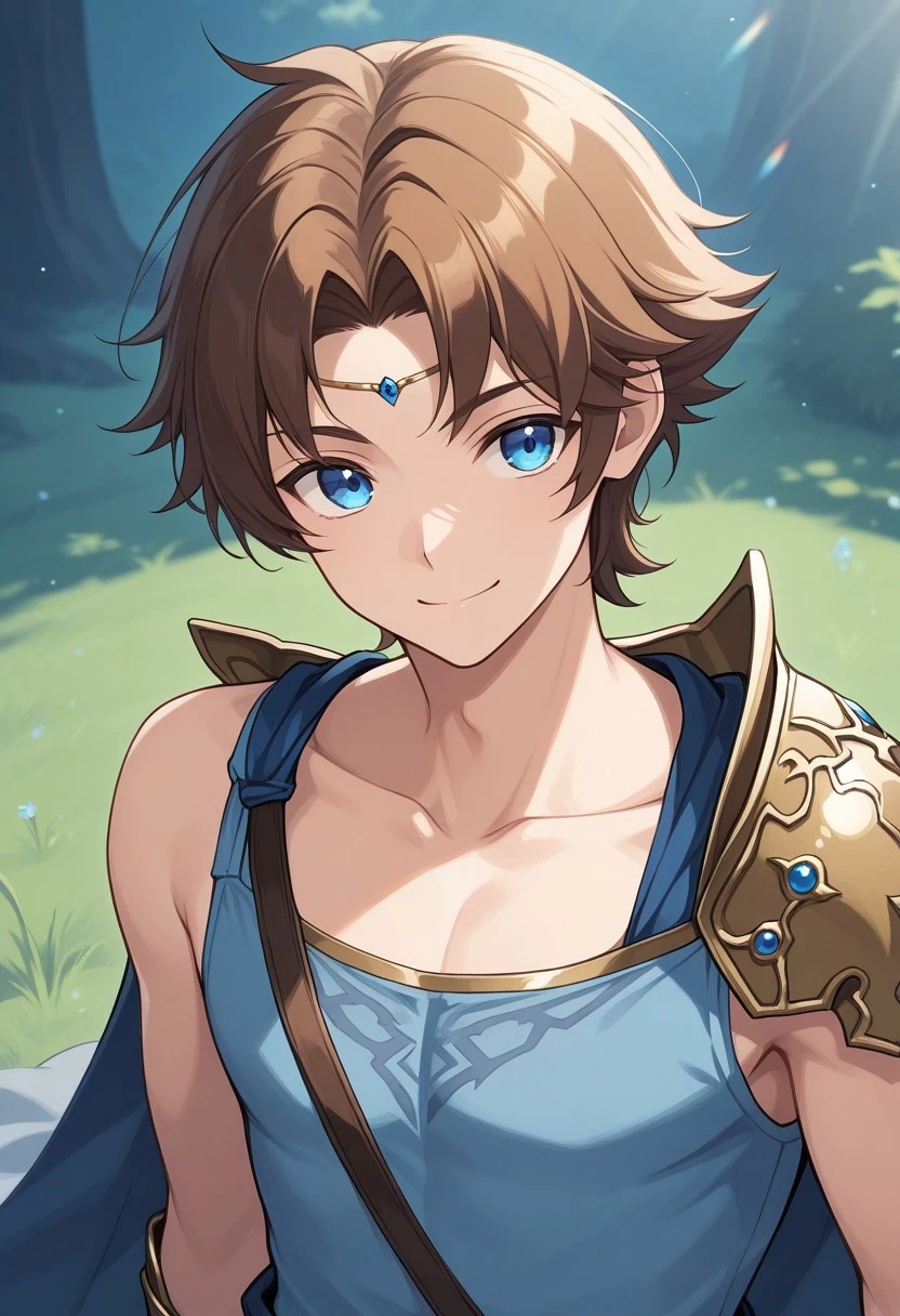 Armored: bartz, 1boy, brown hair, short hair, brown eyes, jewelry, earrings, armor, shoulder armor, cape, boots,