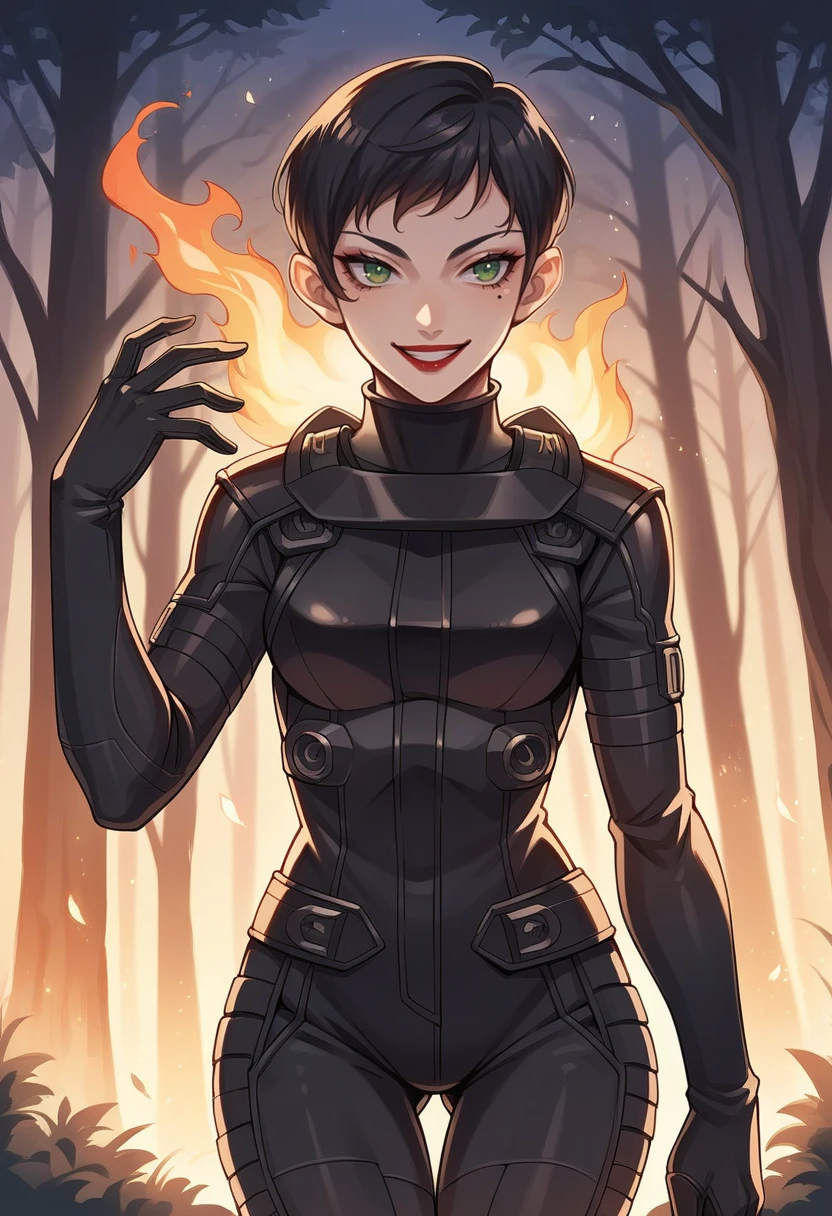 Tags: yurikosmtiv, black hair, short hair, lipstick, mole under eye, makeup, green eyes, black bodysuit