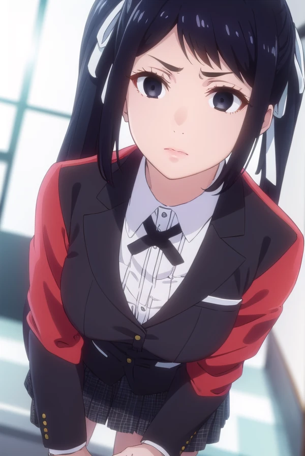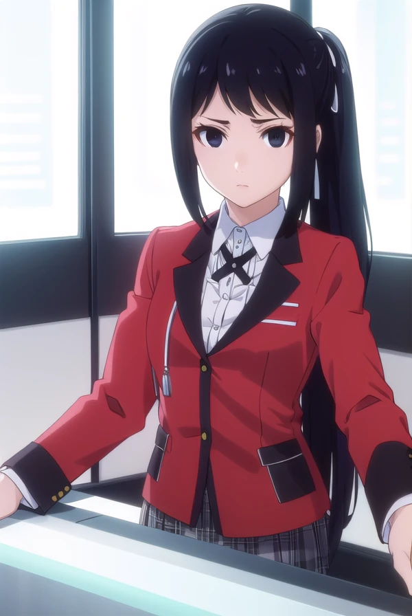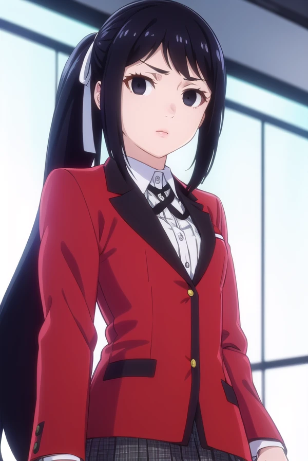 sayaka igarashi, long hair, black hair, hair ribbon, ponytail, (black eyes:1.5), empty eyes, side ponytail,