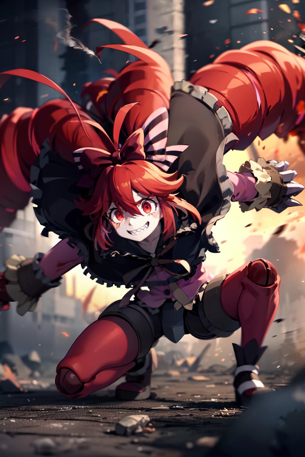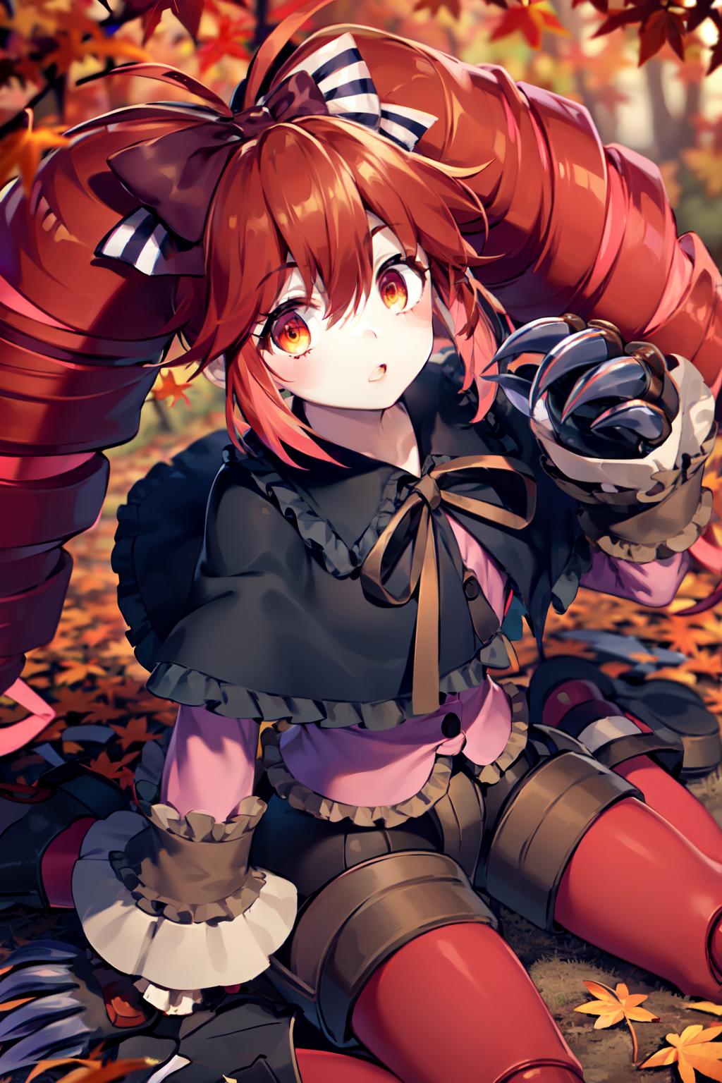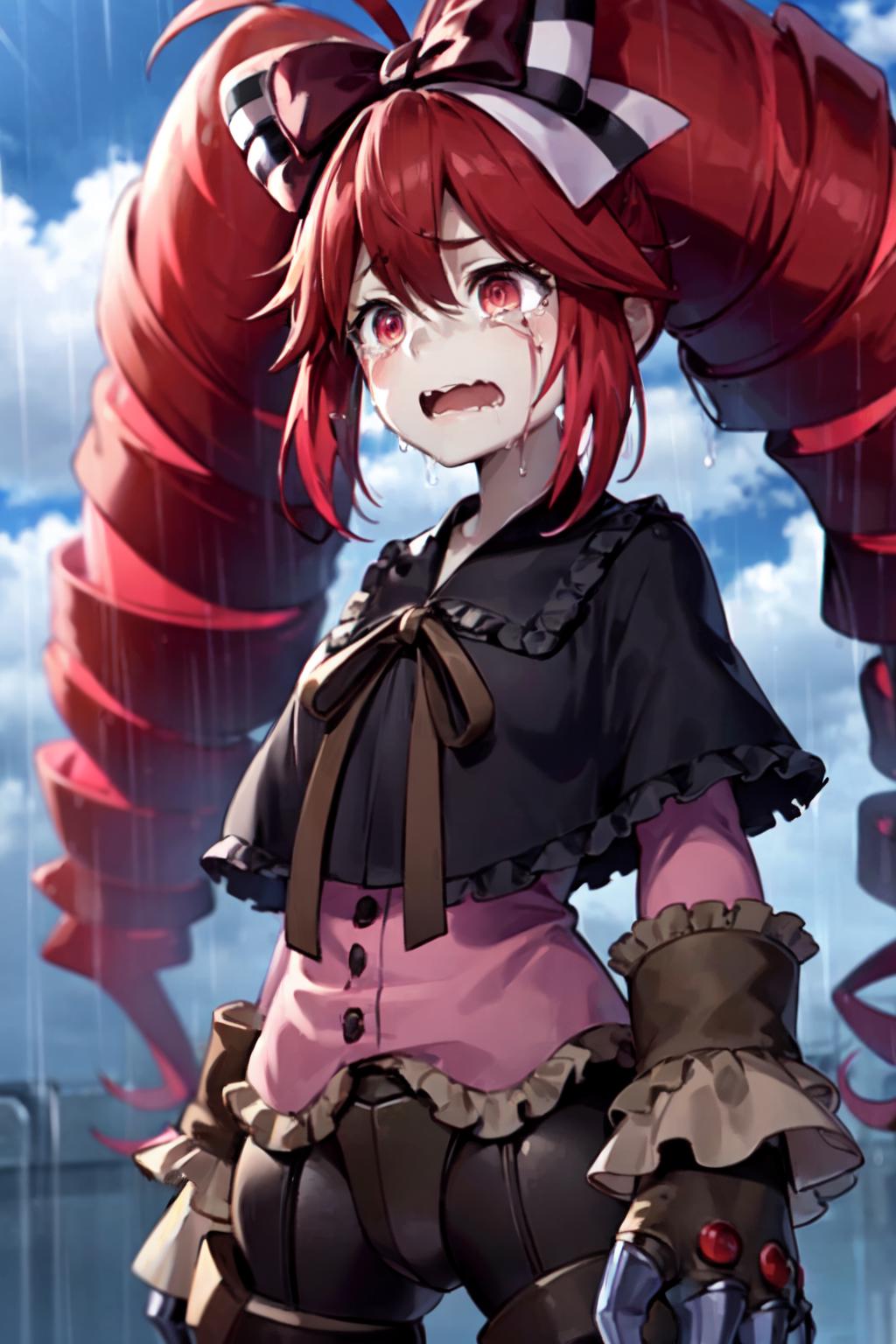 frilled capelet, pink shirt, mechanical hands, claws, frilled cuffs, mechanical legs, shoes