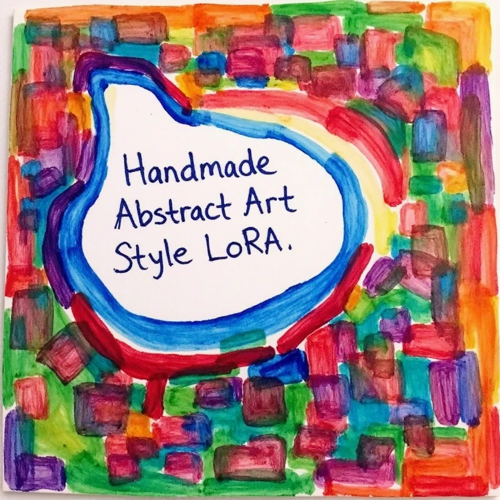 Handmade Abstract Art is a LoRa distilled entirely from my finished pieces—zero borrowed brushstrokes, 100 % personal pigment. It turns any prompt into a burst of chunky colour blocks, bold black outlines, and playful symbolism: wide-eyed suns, storytelling shapes, pop-surreal portraits, and feel-good chaos that still knows where the edges of the canvas are.