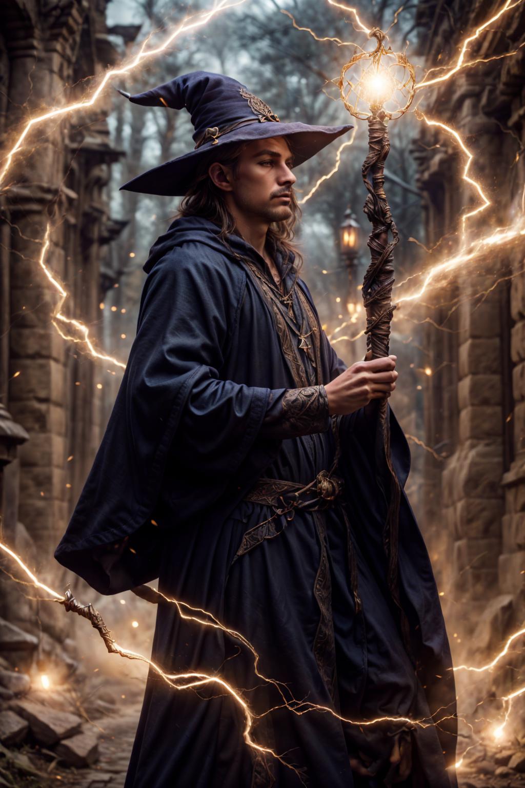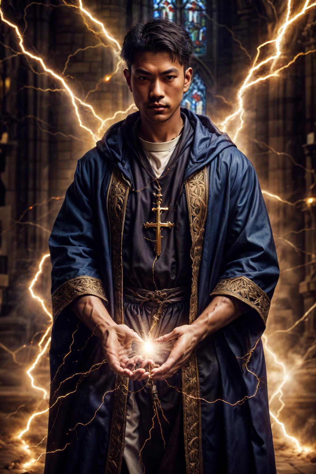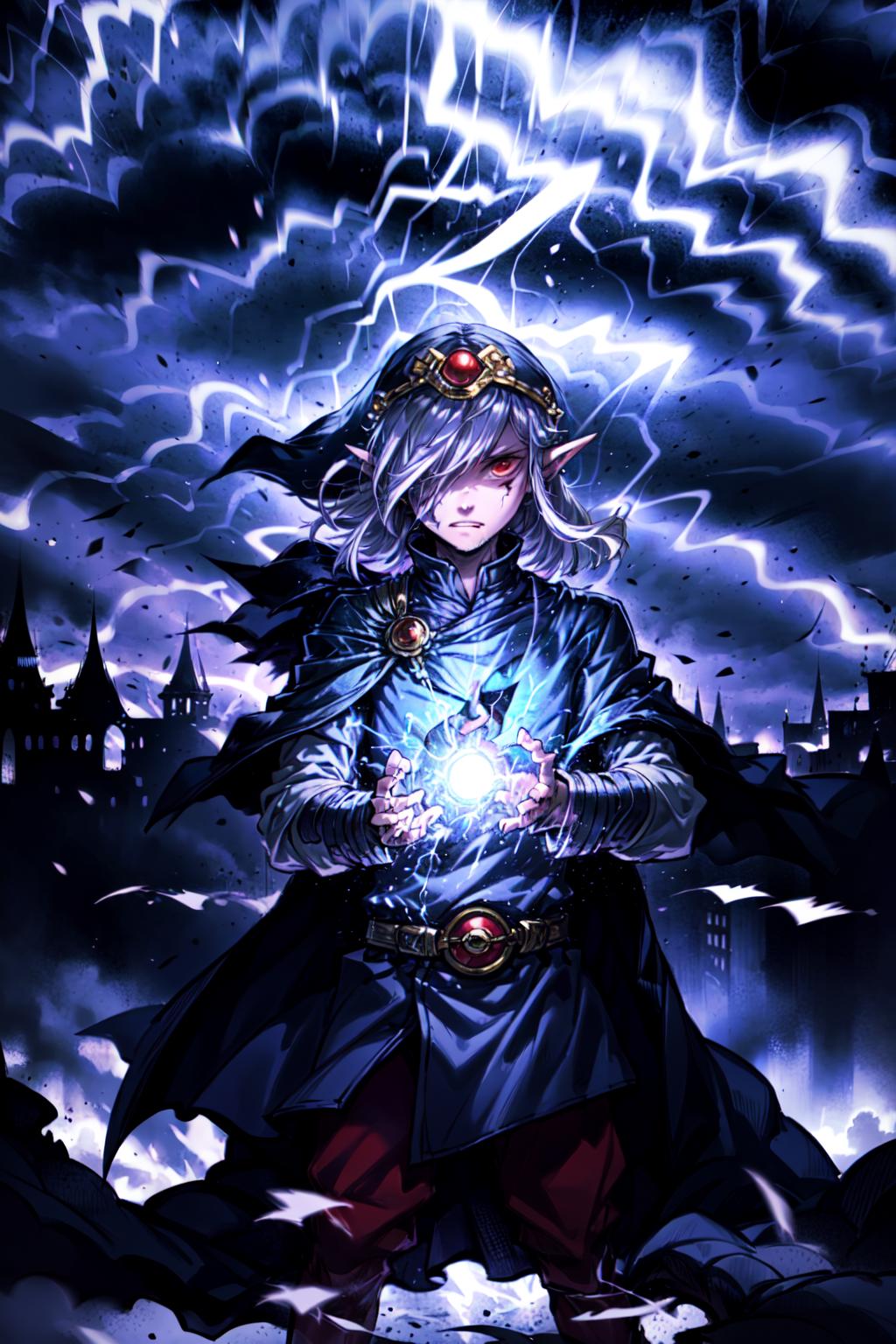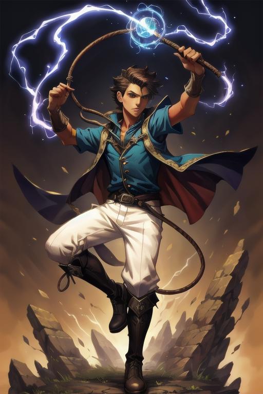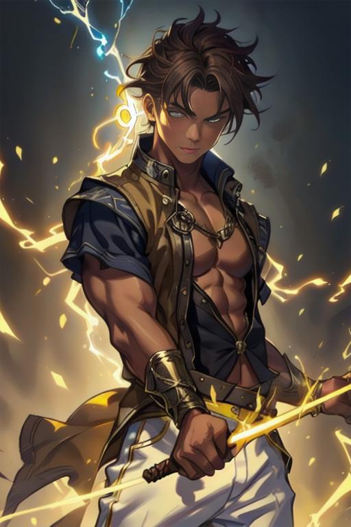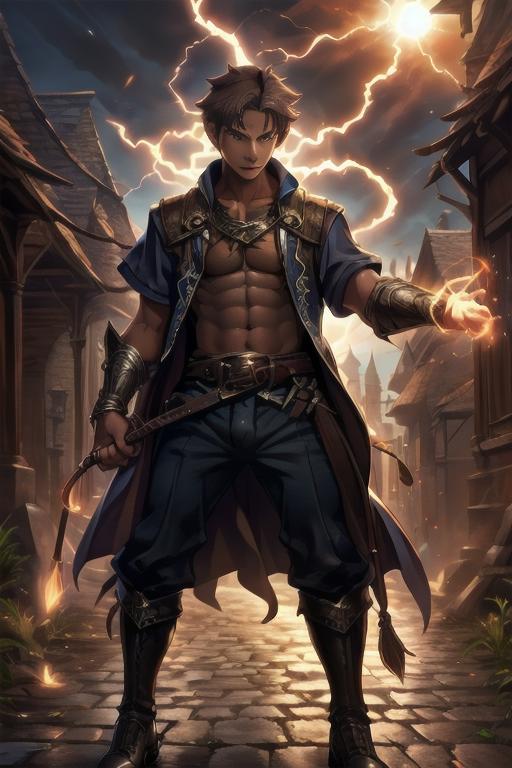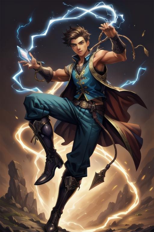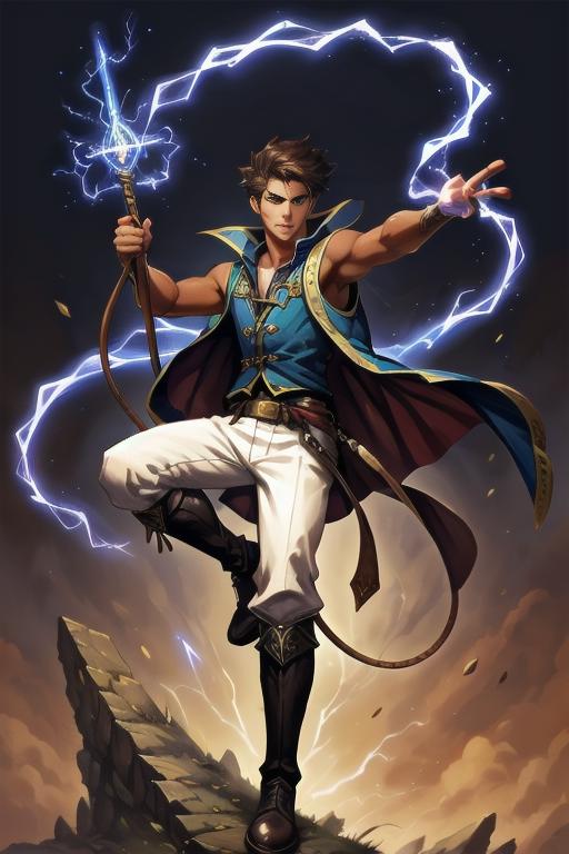 Optional tags: dynamic pose, fighting stance, casting spell (sometimes electricity only appears correctly when doing certain action pose)