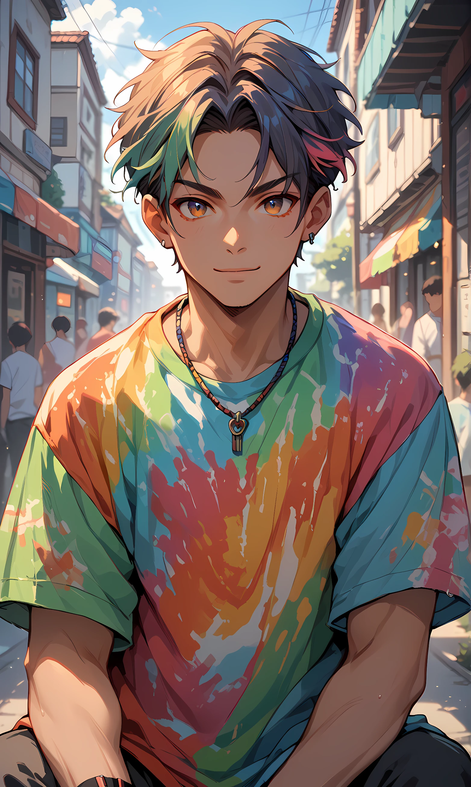 T13DY3V1, multicolored_shirt, colorful, t-shirt, multicolored_clothes