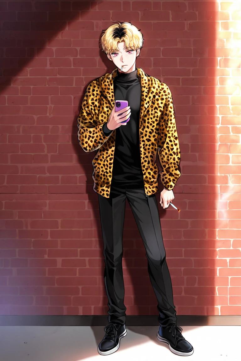 multicolored hair, blonde hair, black hair, short hair, parted bangs