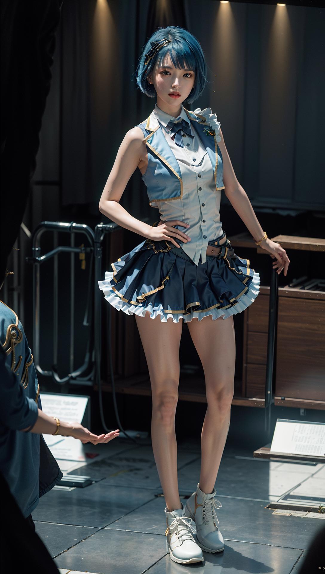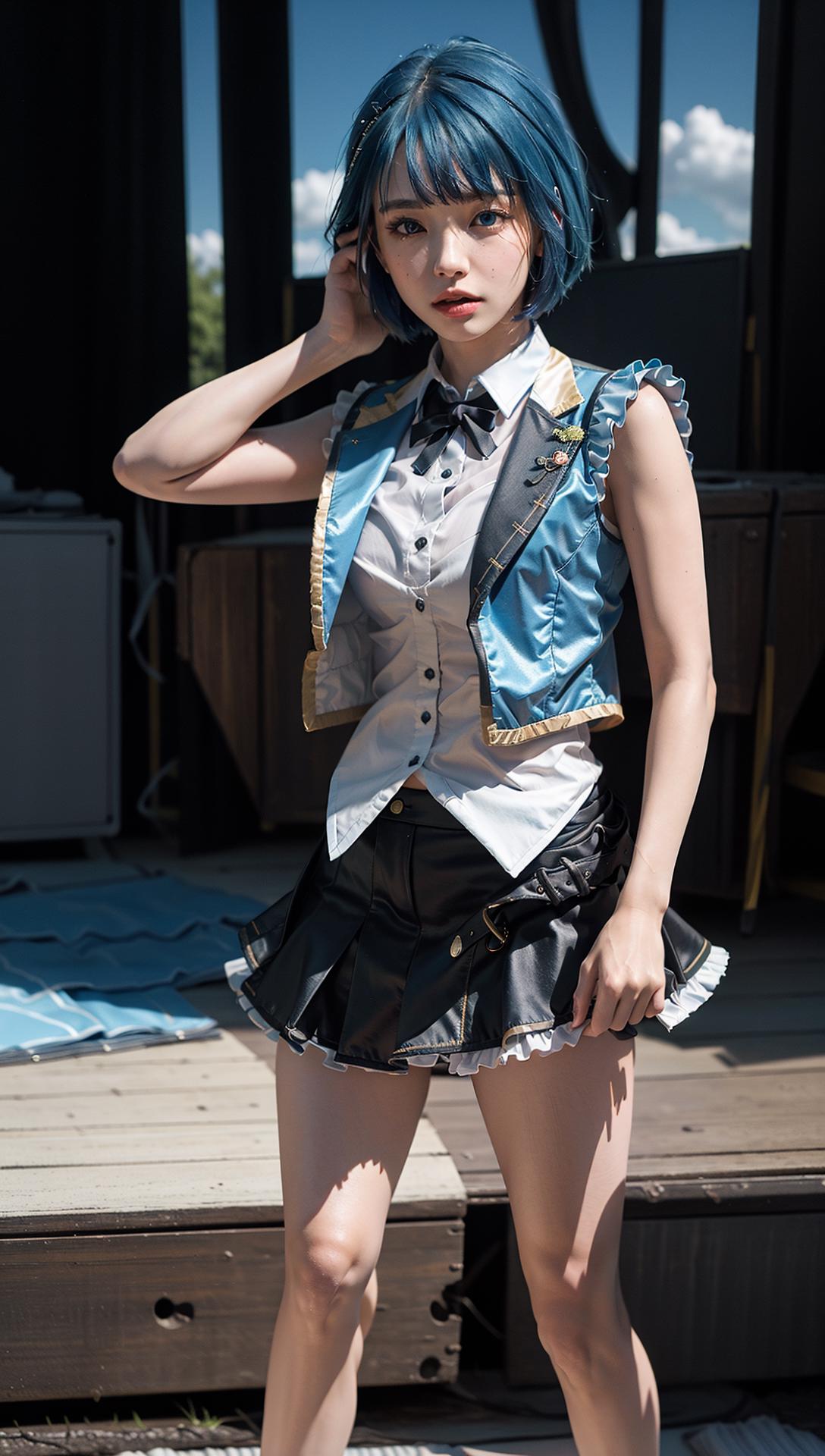 因为对桐谷遥的打歌服跑的不满意,所以单独拿出来跑的一版,权重0.8,跑真人要加blue hair,