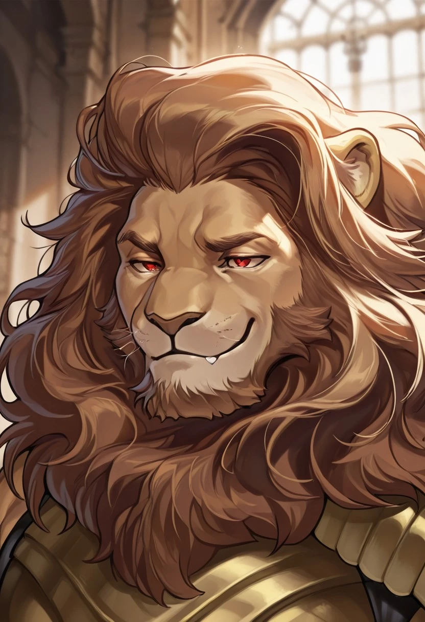 lion boy, leandros, brown fur, red eyes, mane,