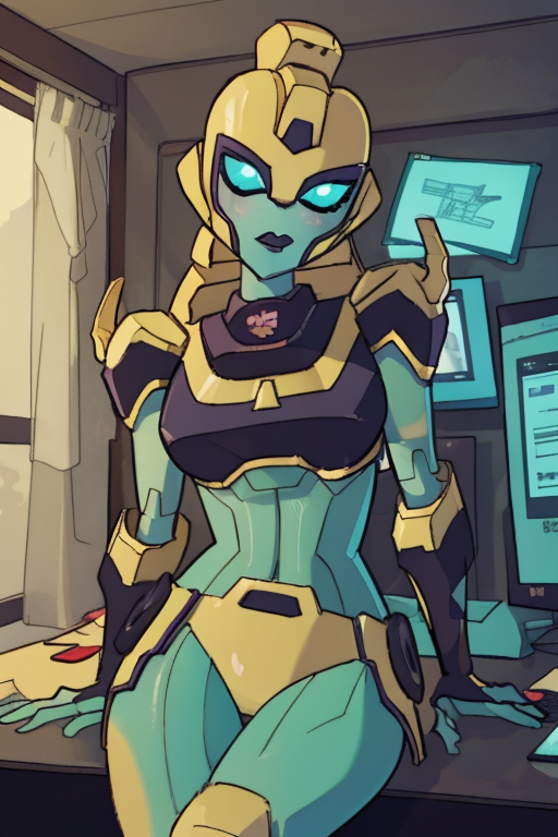 Elita One from her appearance in TFA. Works best at .8 weight. Activated using "elita one", additional tags include "robot, mecha, glowing eyes, no_humans, autobot". Can do slight NSFW.
