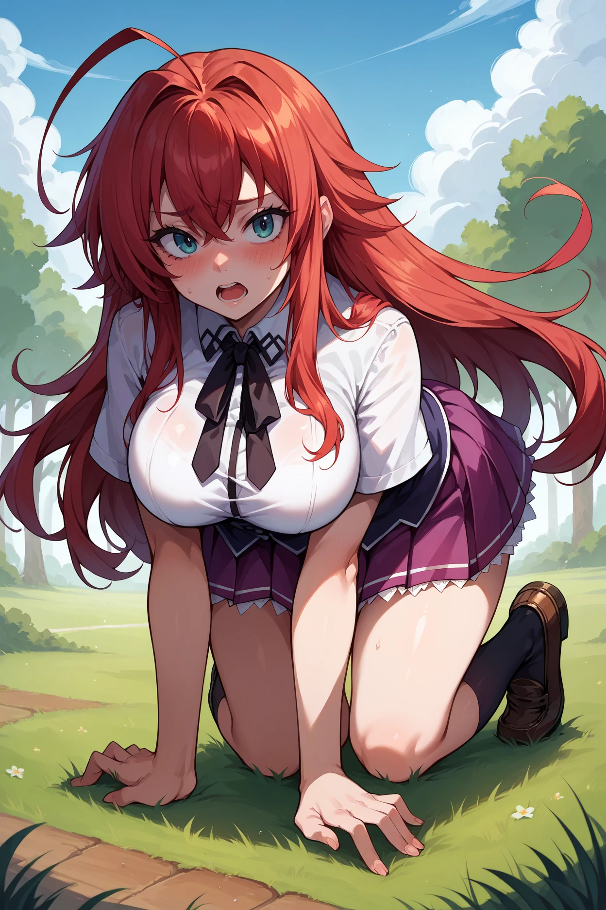 Trigger word is "dxdRG" and "red hair, ahoge, long hair" is required.
