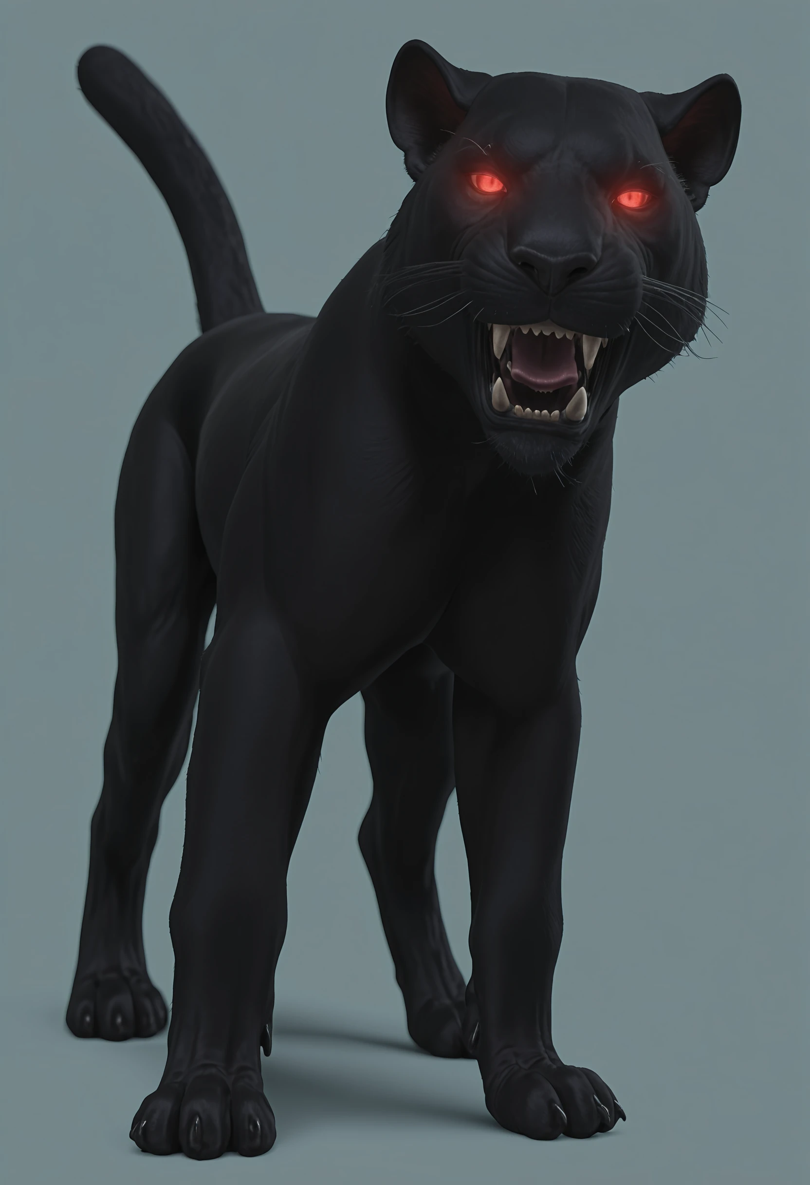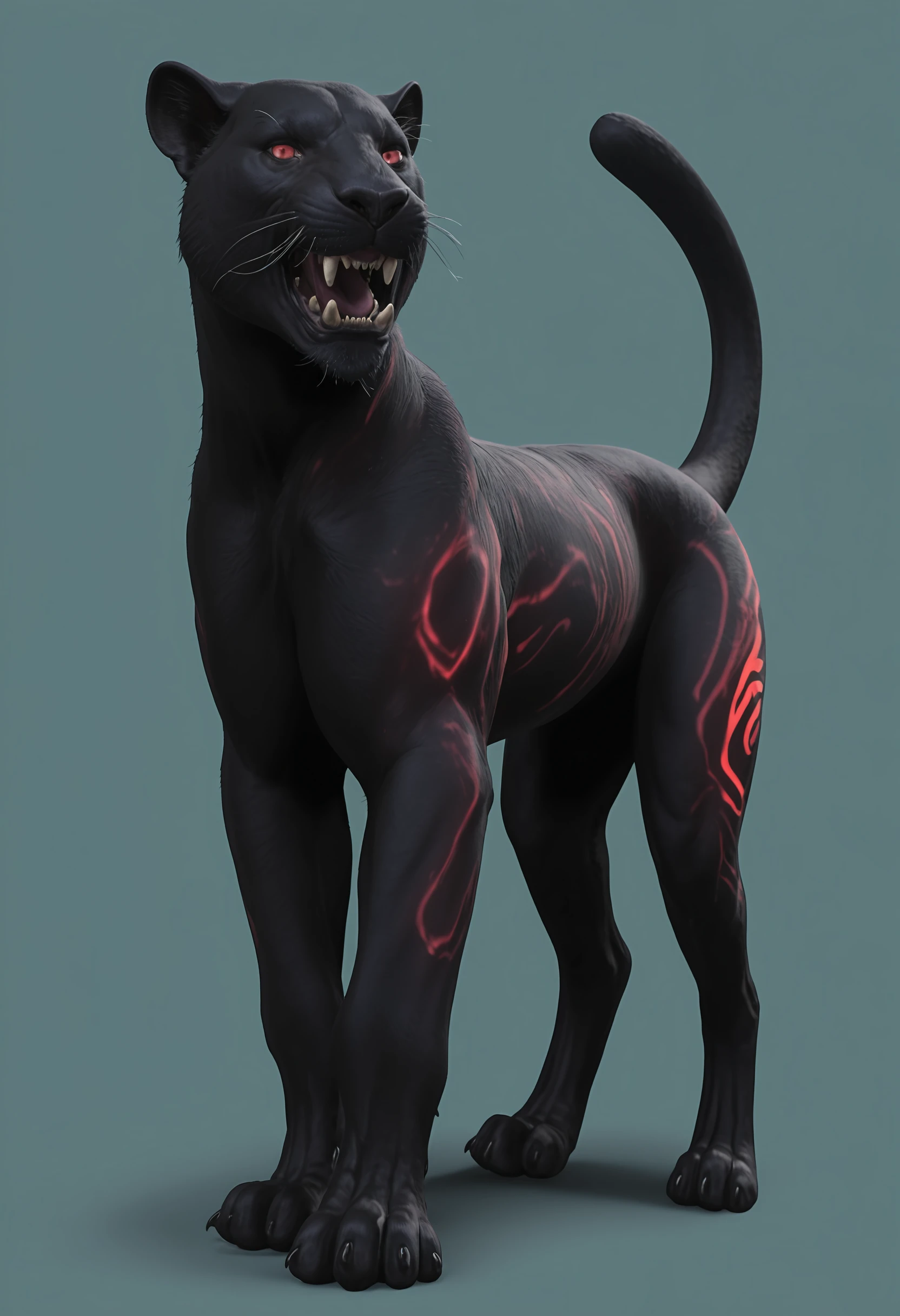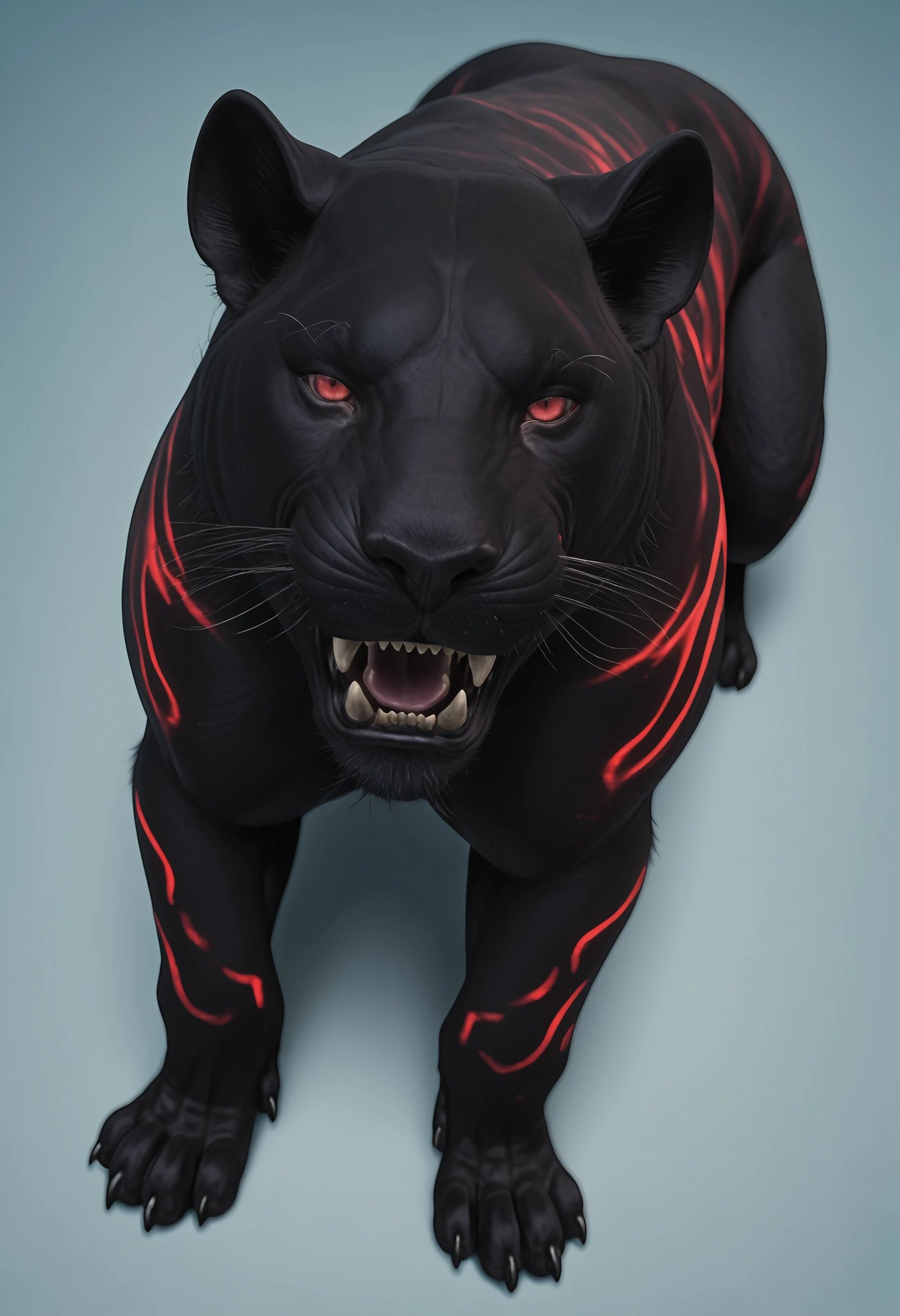 • shilf, colored fur, black fur, animal, red eyes, fangs, sharp teeth, glowing eyes