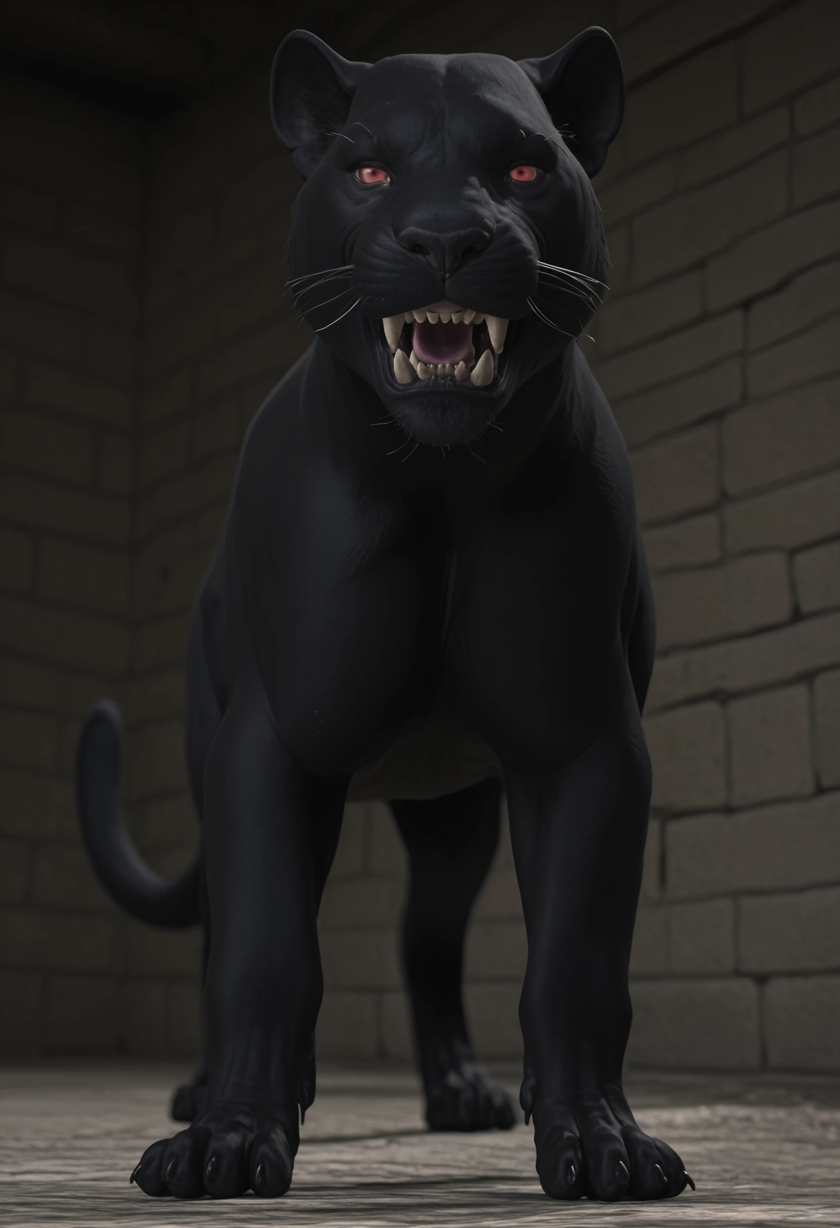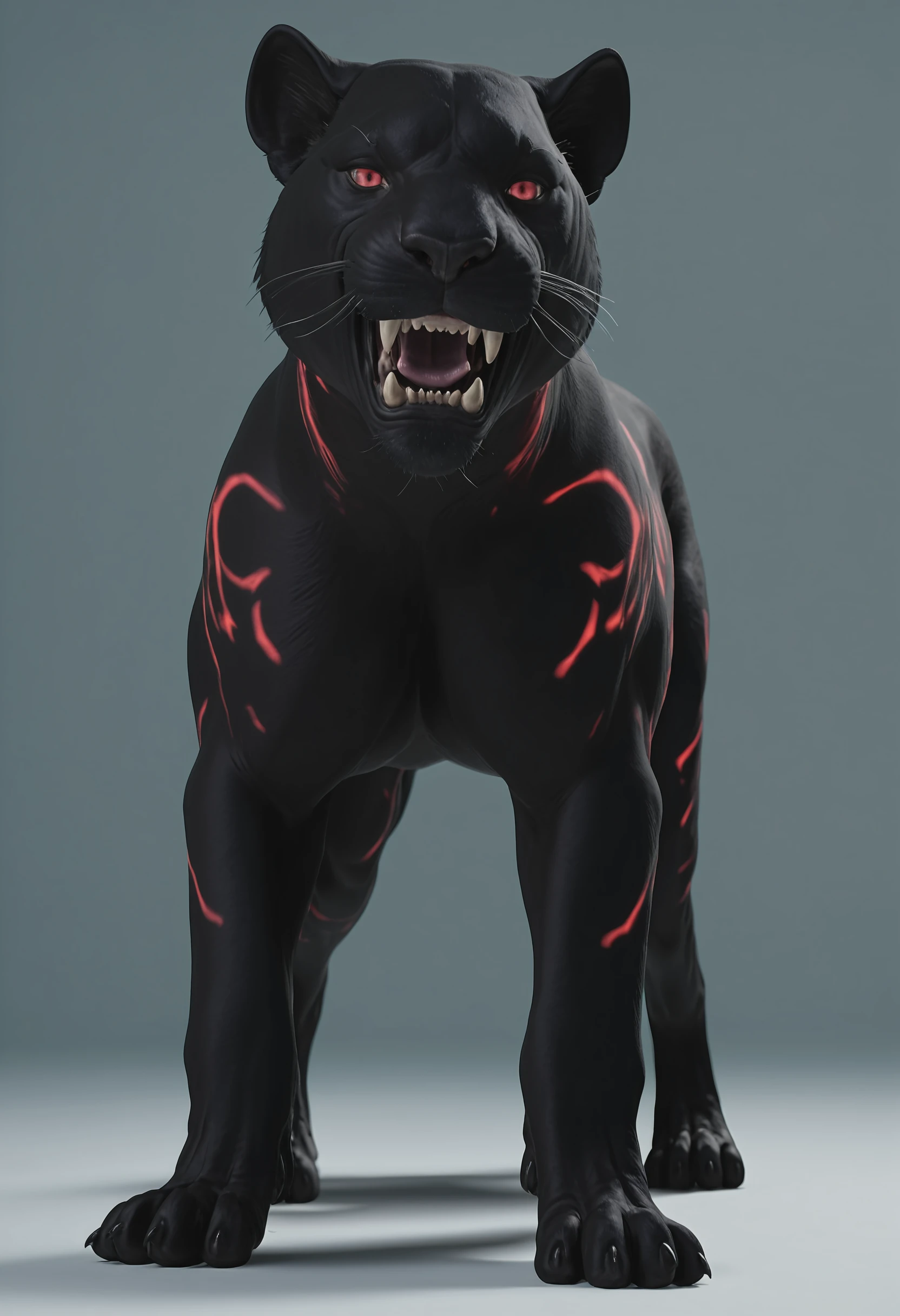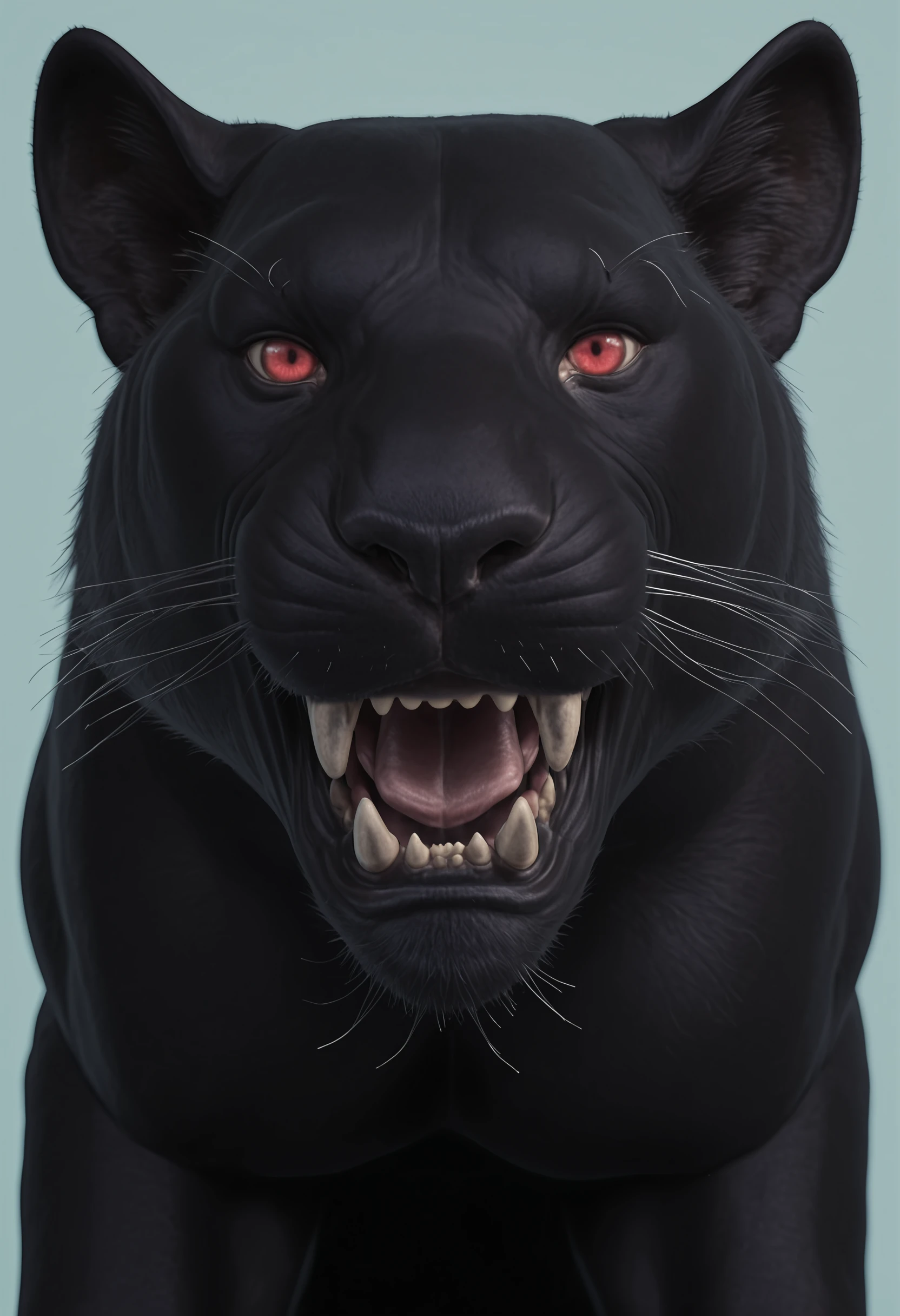 • shilf, colored fur, black fur, animal, red eyes, fangs, sharp teeth, glowing eyes