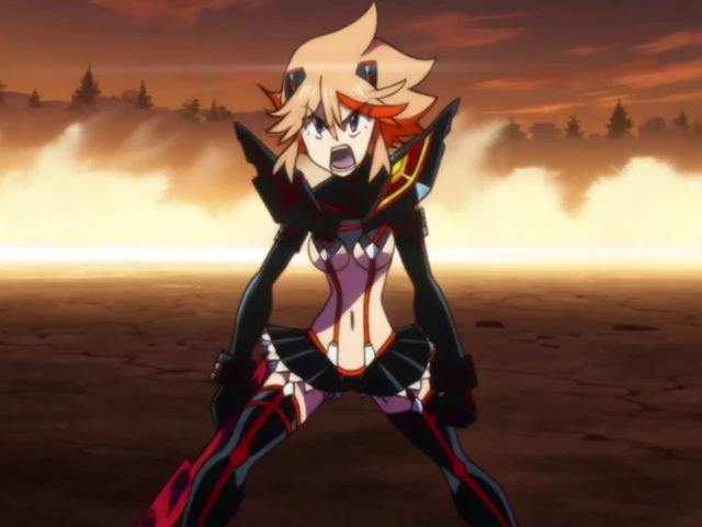 If her outfit and hair color are not explicitly described, they will most likely default to Ryuko's original clothing. In everyday scenes, she will wear her regular uniform, while in battle and intense scenes, she tends to prefer Senketsu.