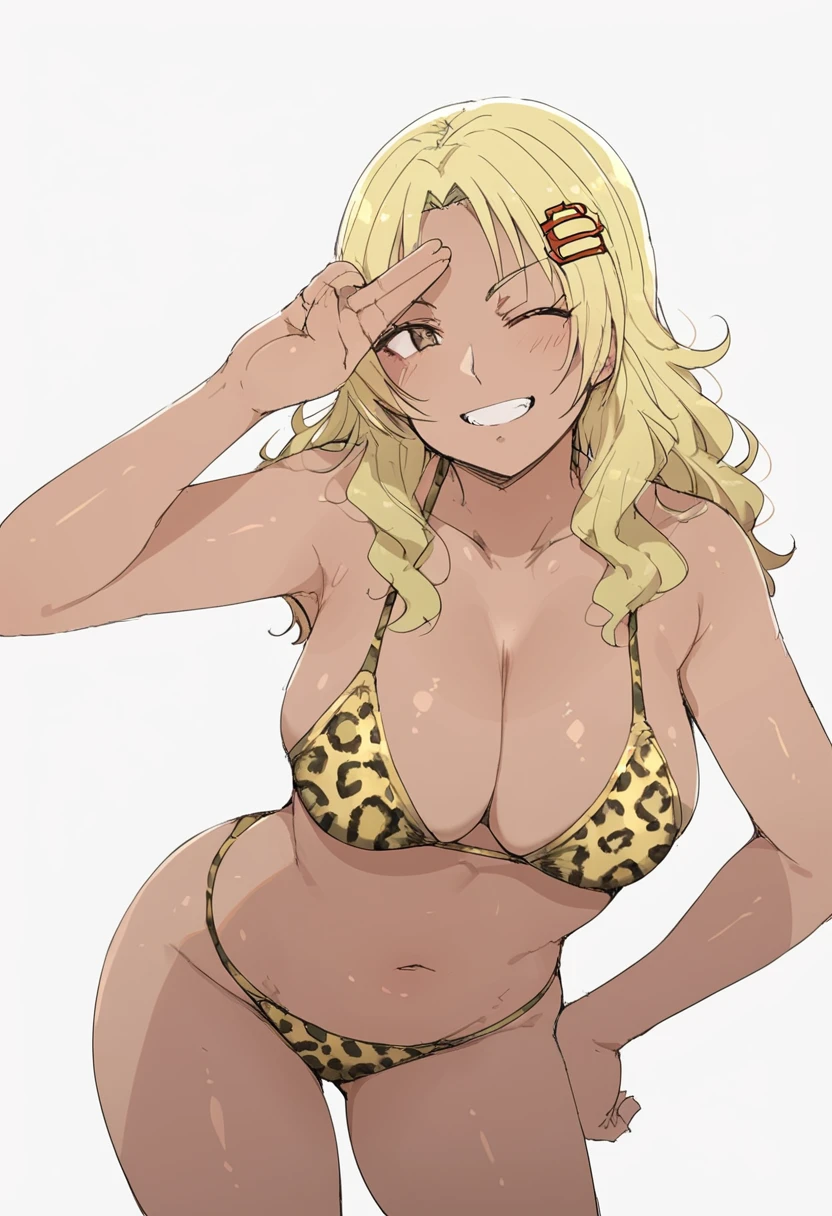 1girl,aiura_mikoto,blonde hair,wavy hair,long hair,dark-skinned female