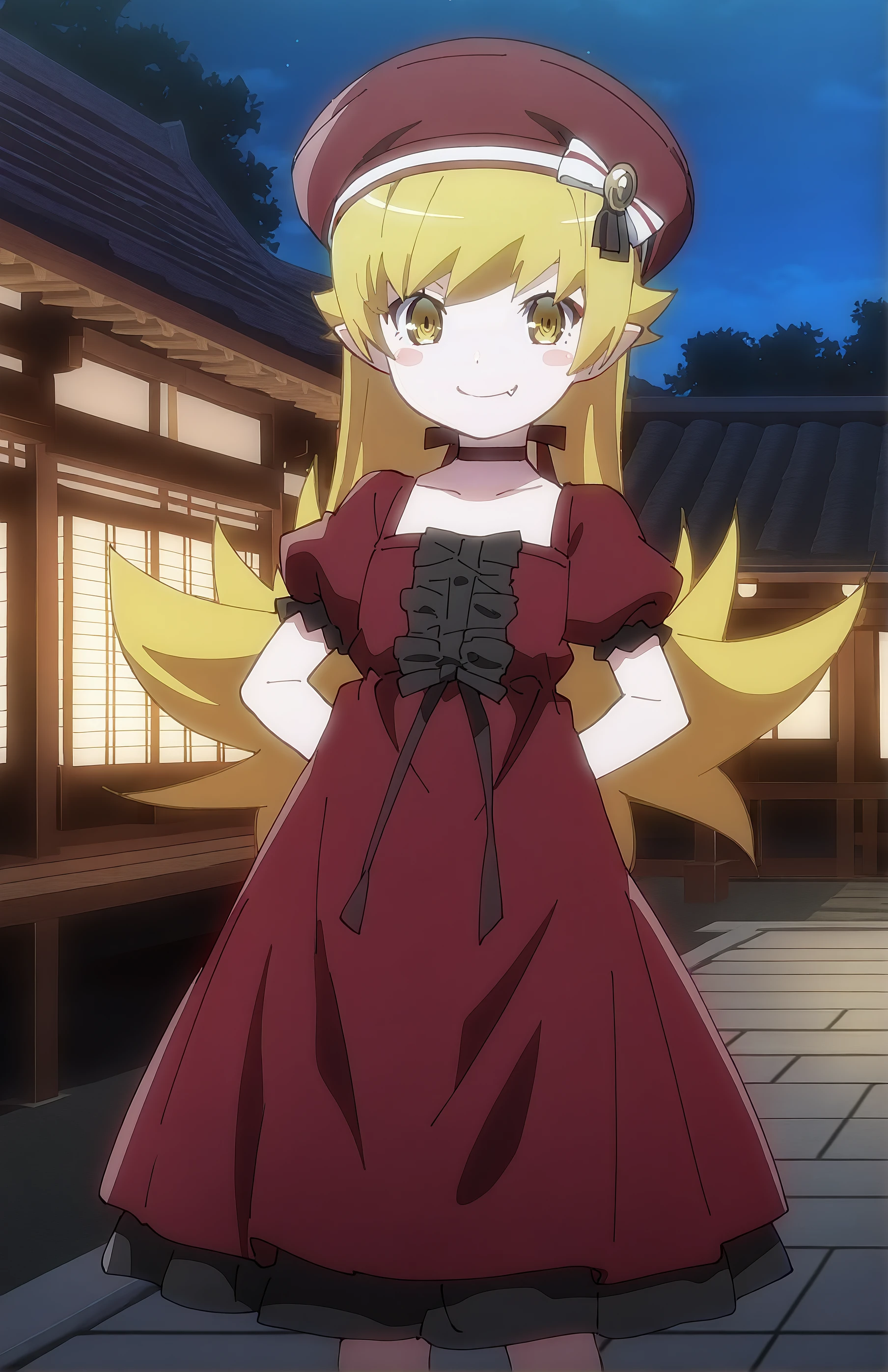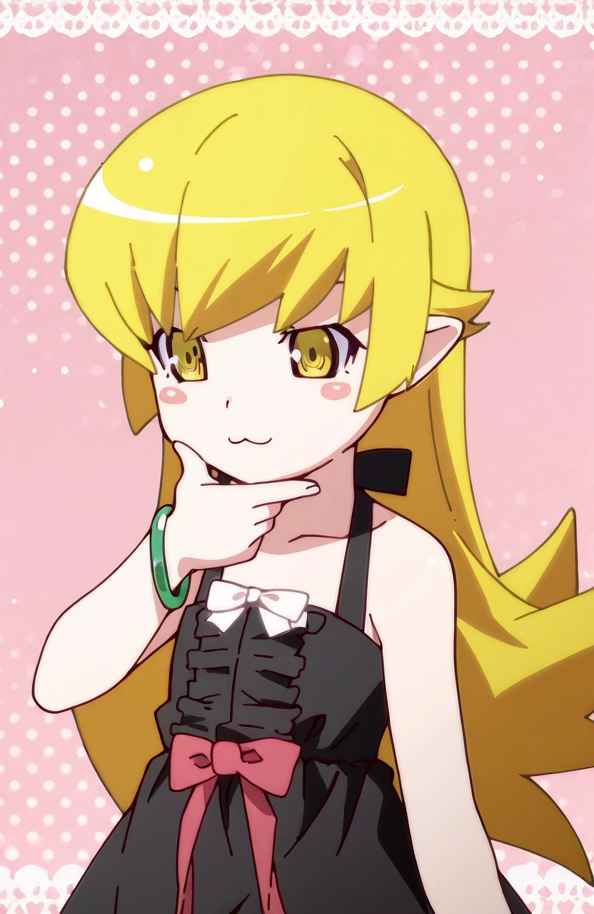 LORA for Oshino Shinobu, from Monogatari Series by Nisio Isin. Recommended weight: 0.8-0.9. Trigger word: OshinoShinobu. Prompt for Bakemonogatari outfit: pink dress, helmet, goggles, goggles on head. At the request a man of culture - HibikiMisora.