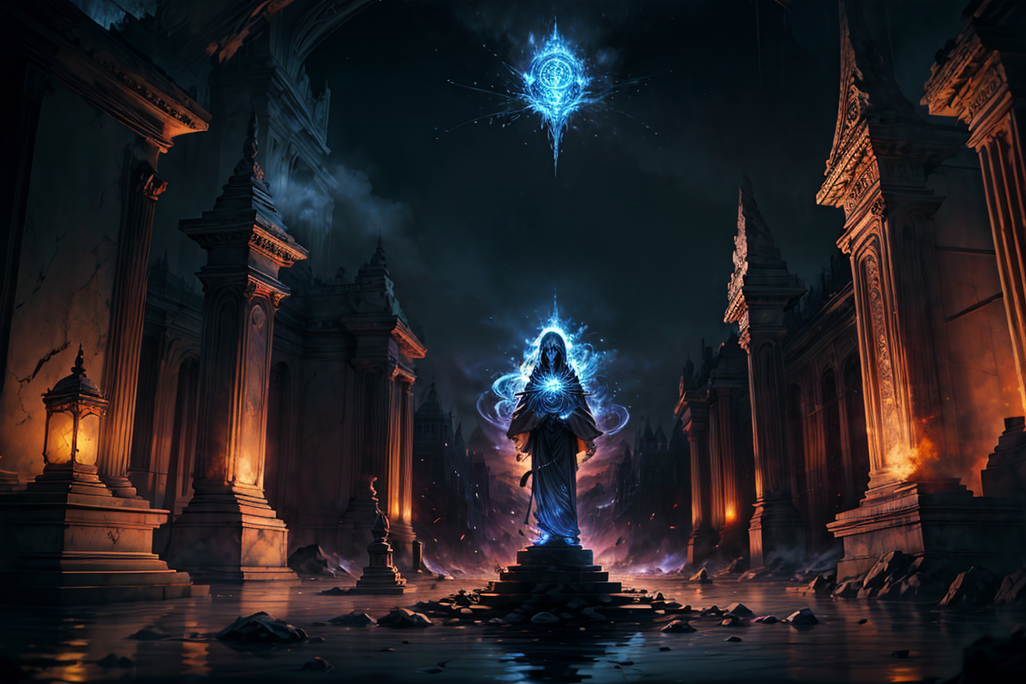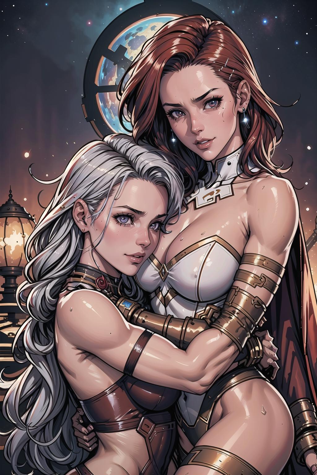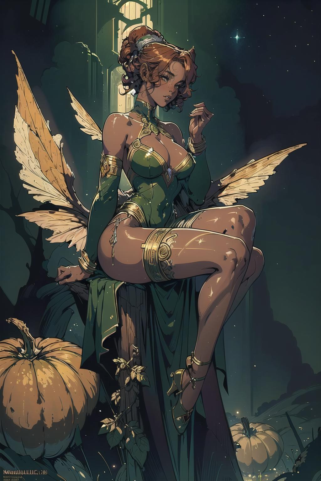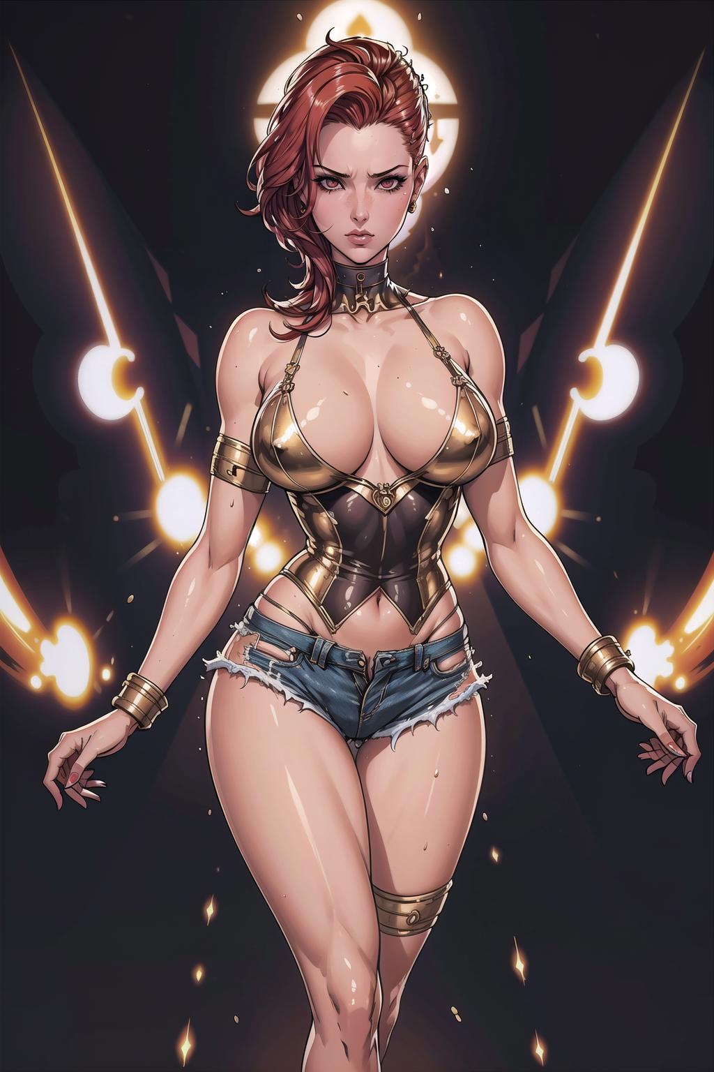 Modern anime style with a bit of a vintage fantasy book cover feel.