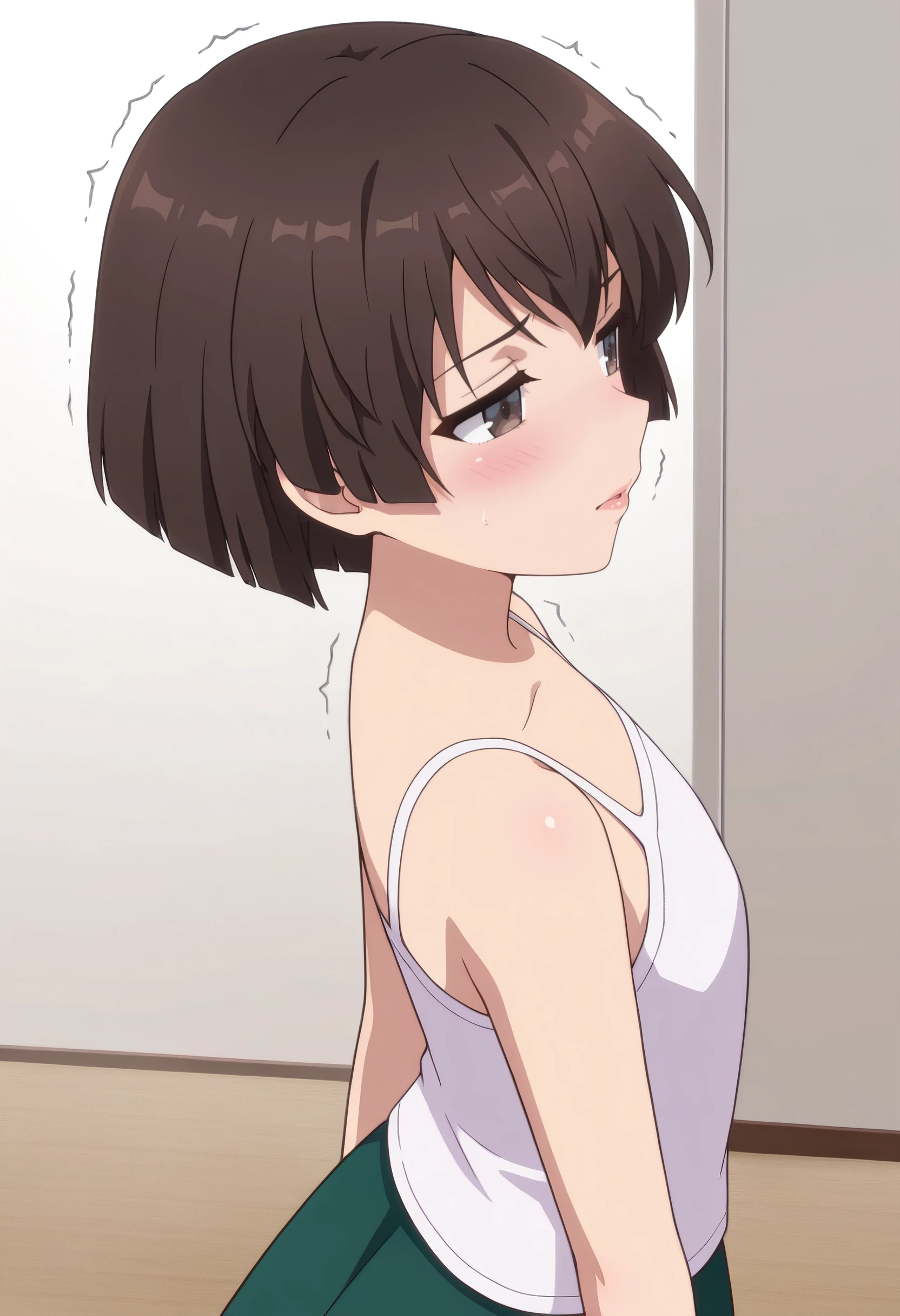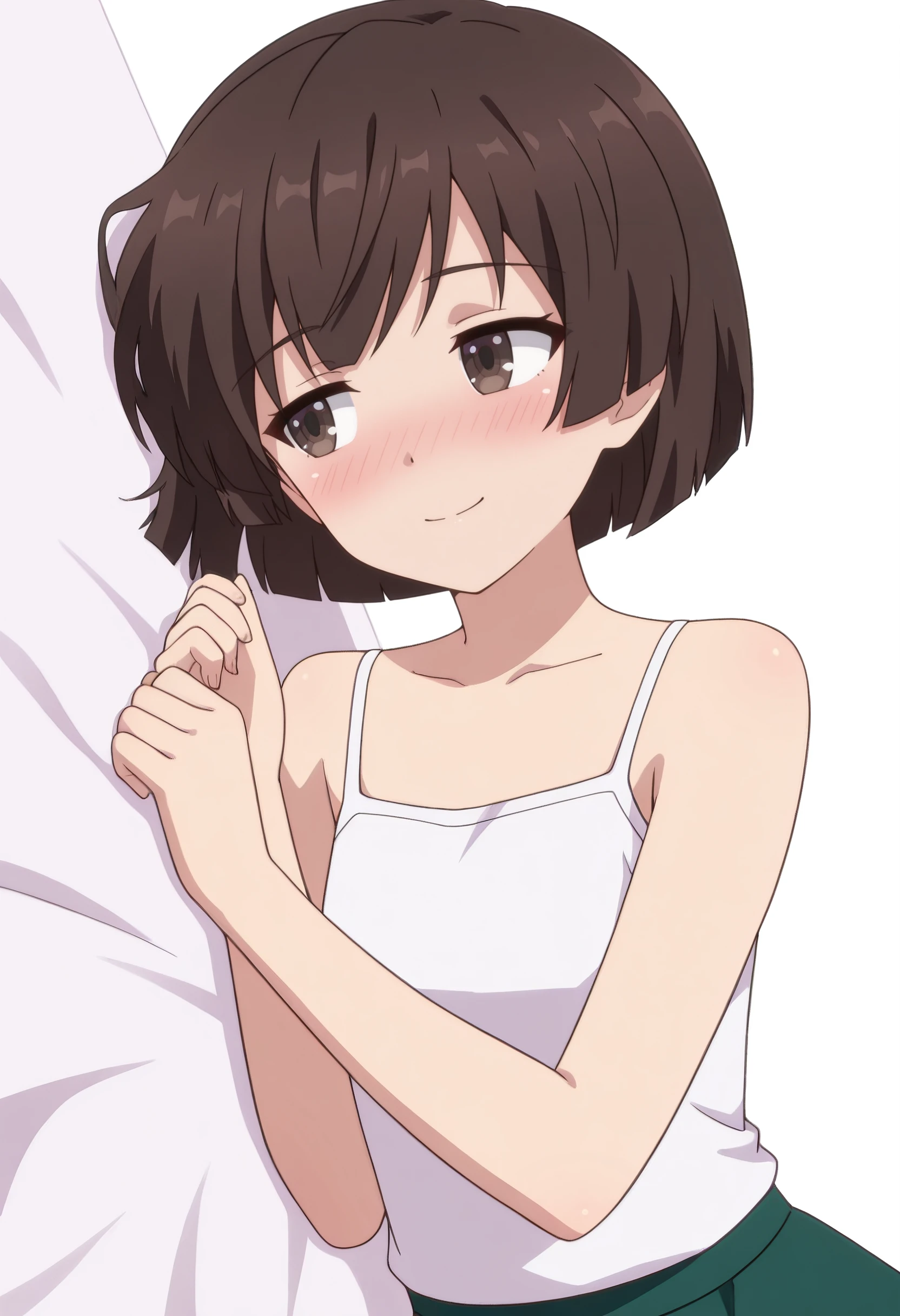 MiuTanktop, tank top, white tank top, shirt, casual, camisole, white camisole, spaghetti strap, blunt ends, white shirt, skirt, green skirt,