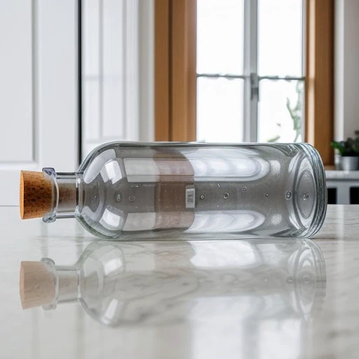 The LoRA model creates a laying transparent glass bottle with a cap.