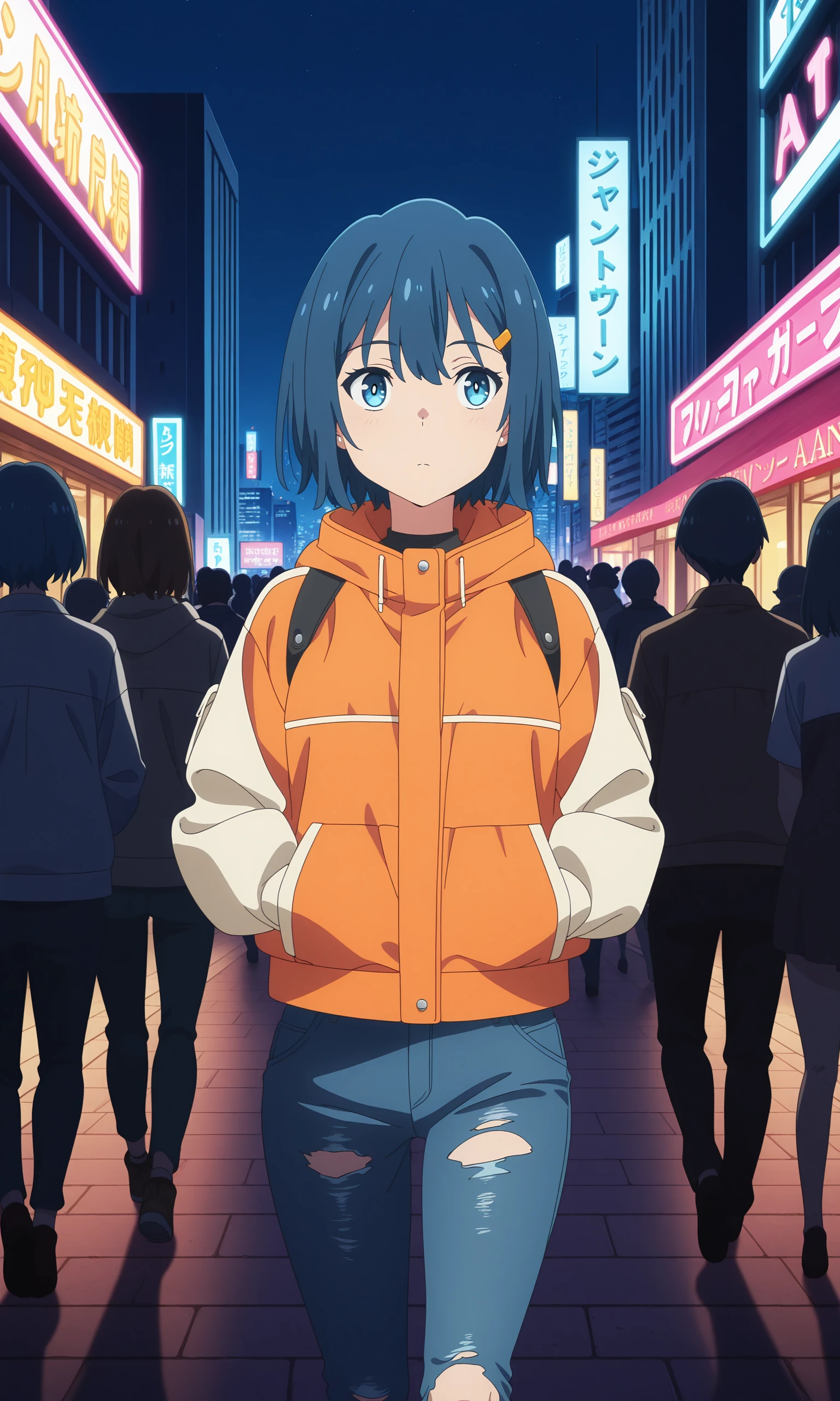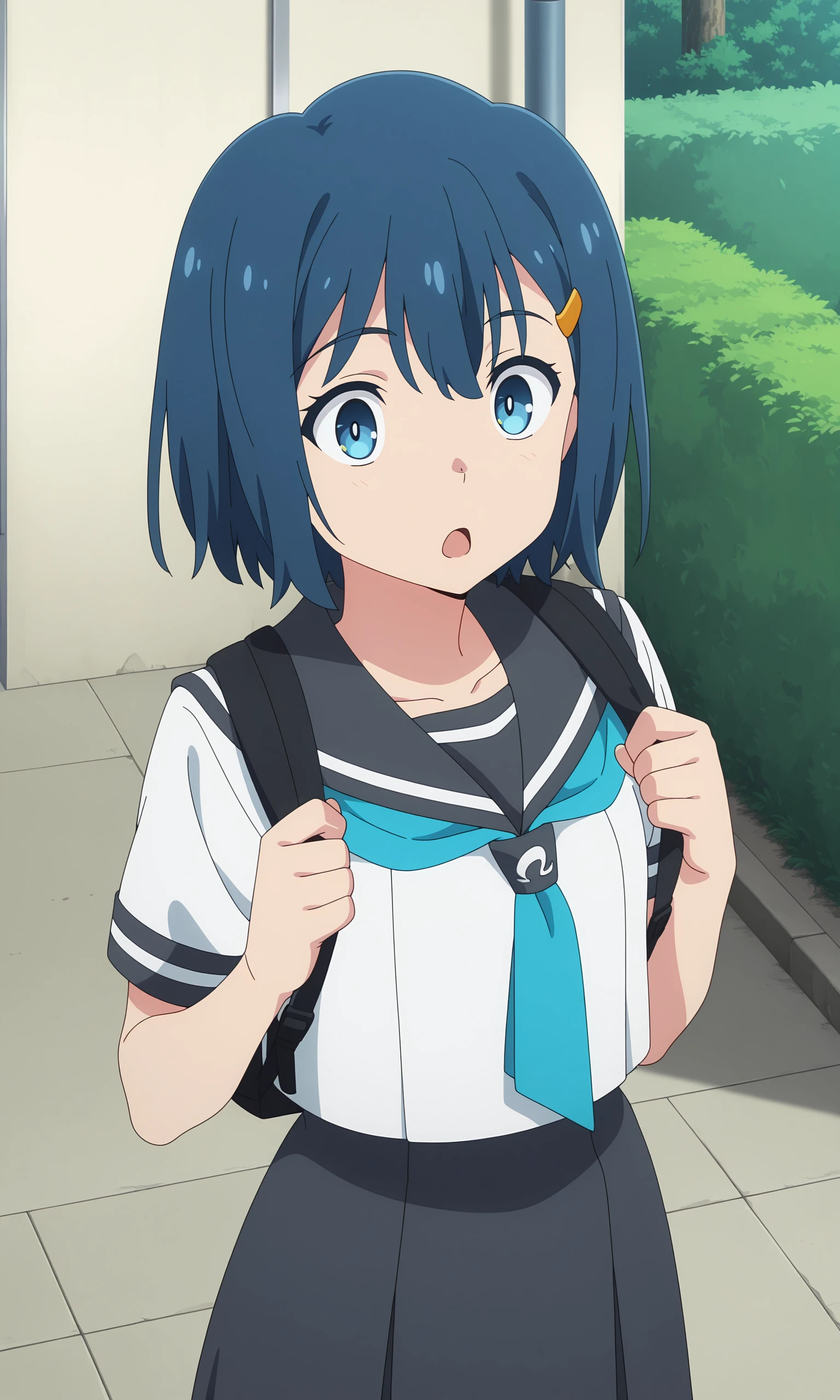 Minami, hair ornament, blue eyes, short hair, hairclip, blue hair,