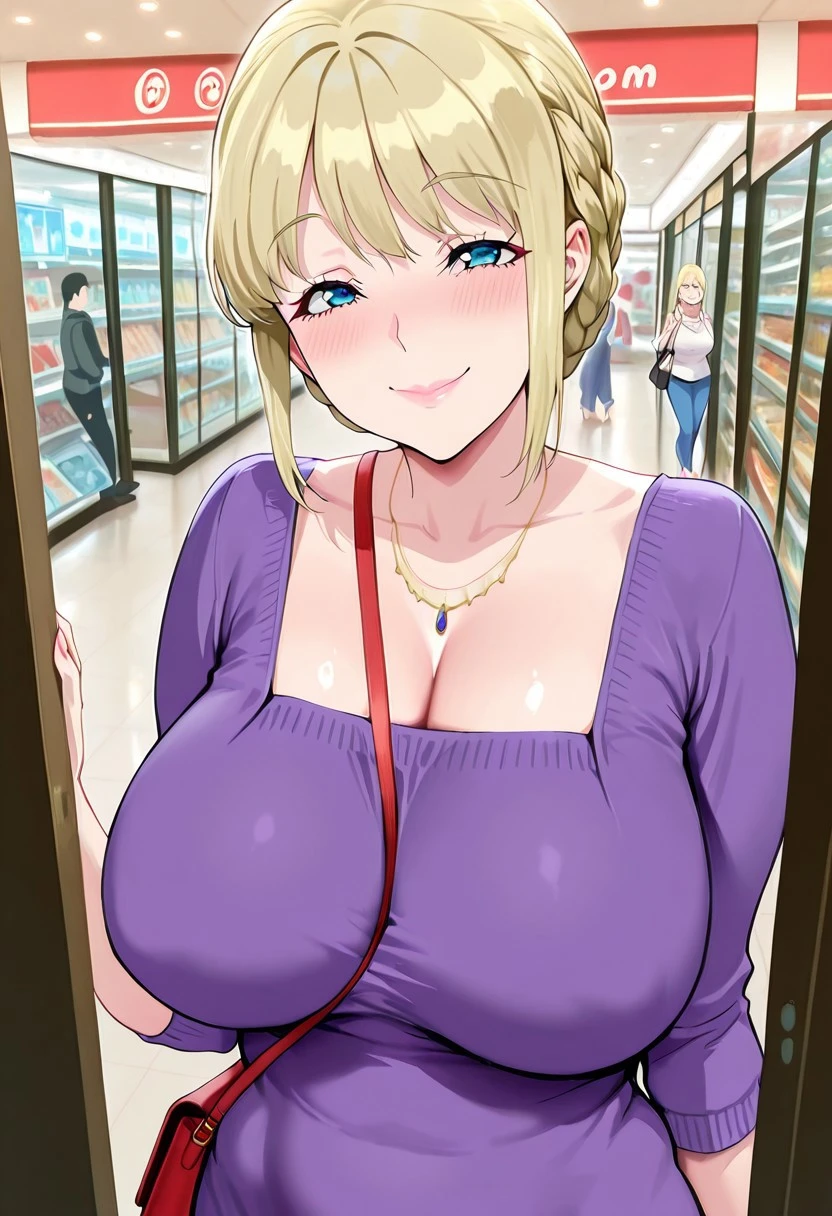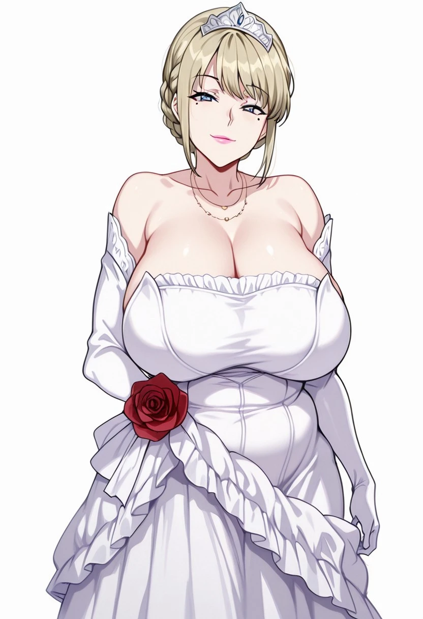 cattleya_peralim, blue eyes, blonde hair, short hair, braid, necklace, lips,