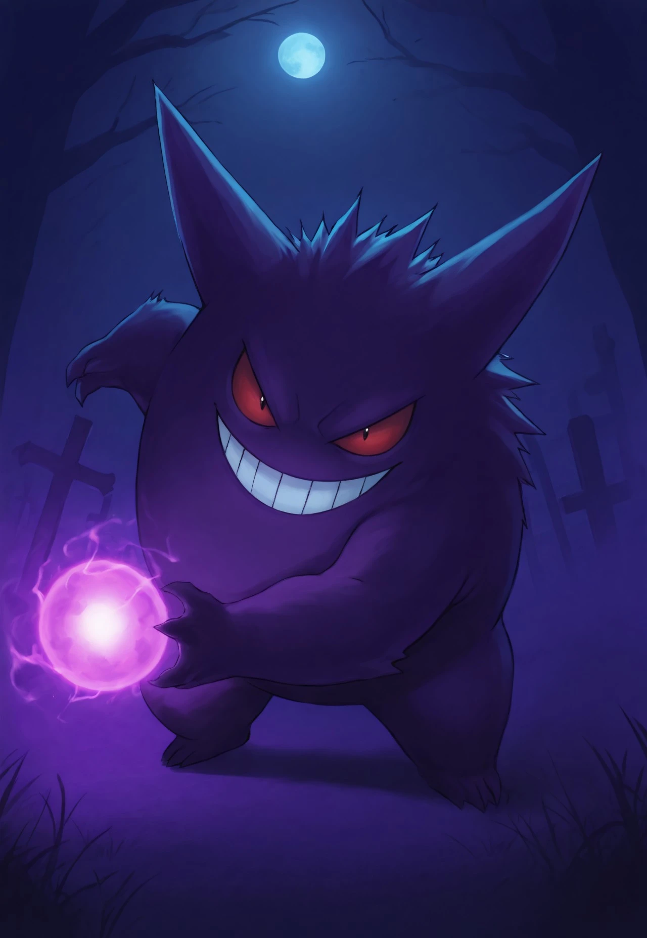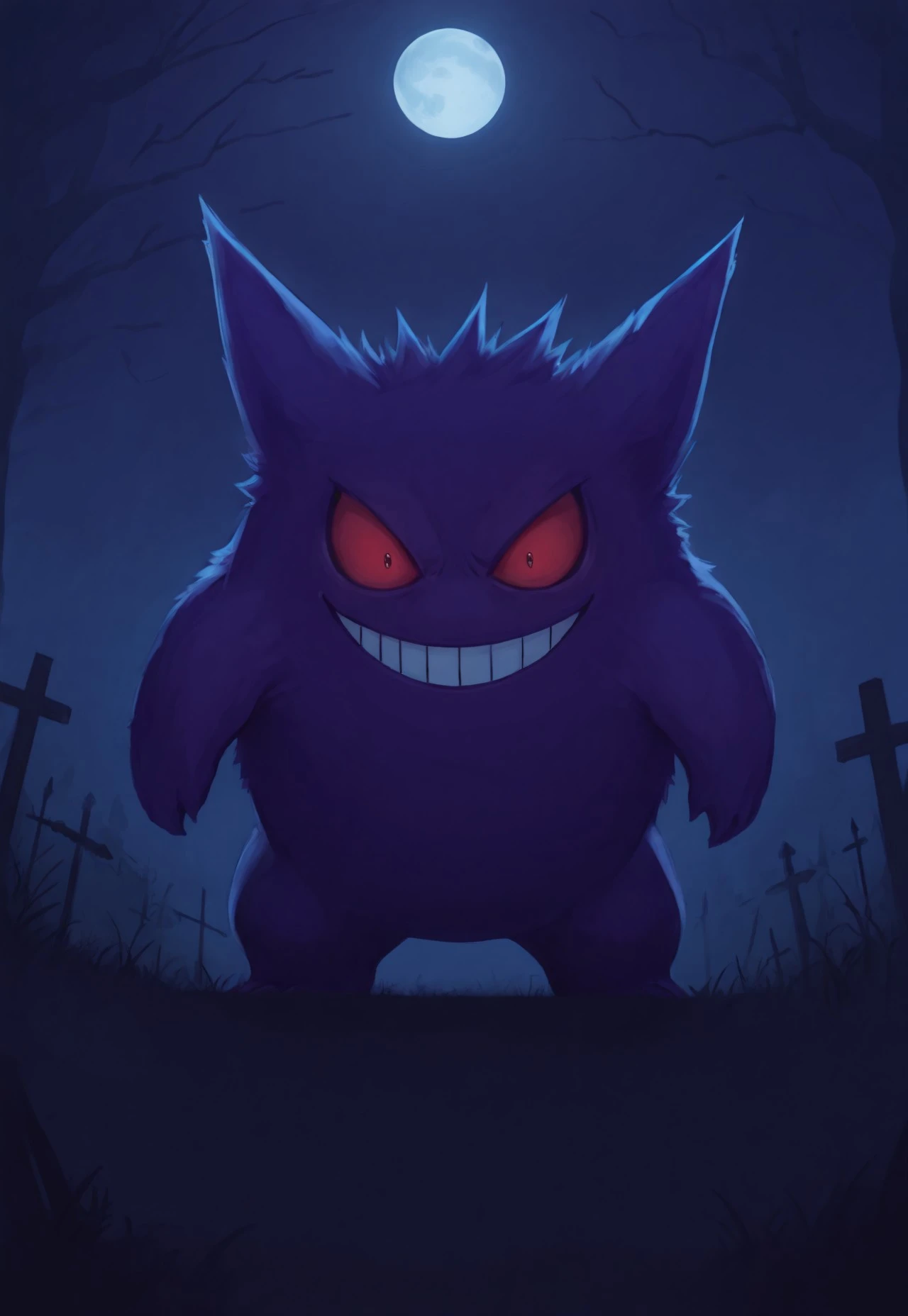 "Under a full moon, this Pokémon likes to mimic the shadows of people and laugh at their fright."
