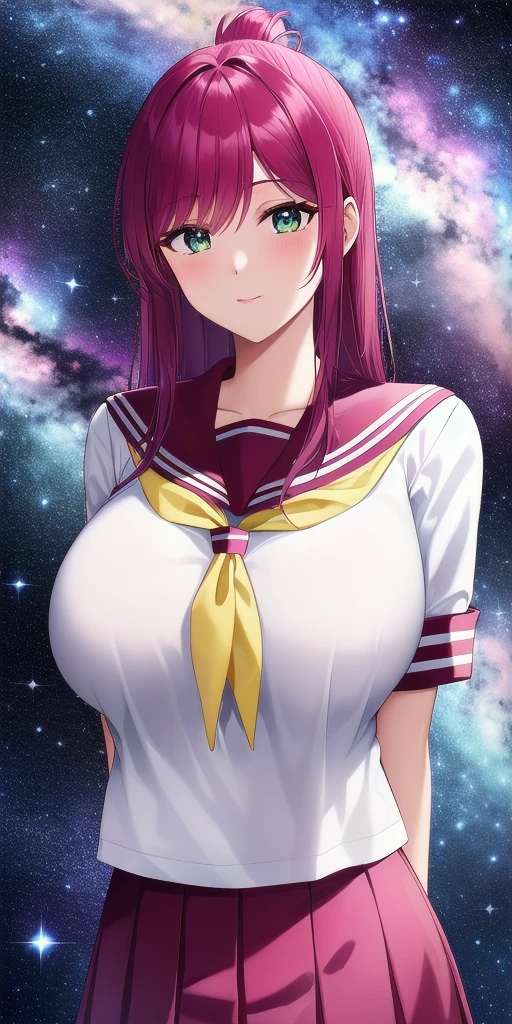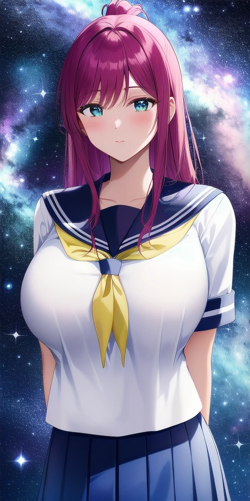 Uniform: school_uniform, serafuku, blue_sailor_collar, blue_skirt, pleated_skirt, yellow_neckerchief, white_shirt