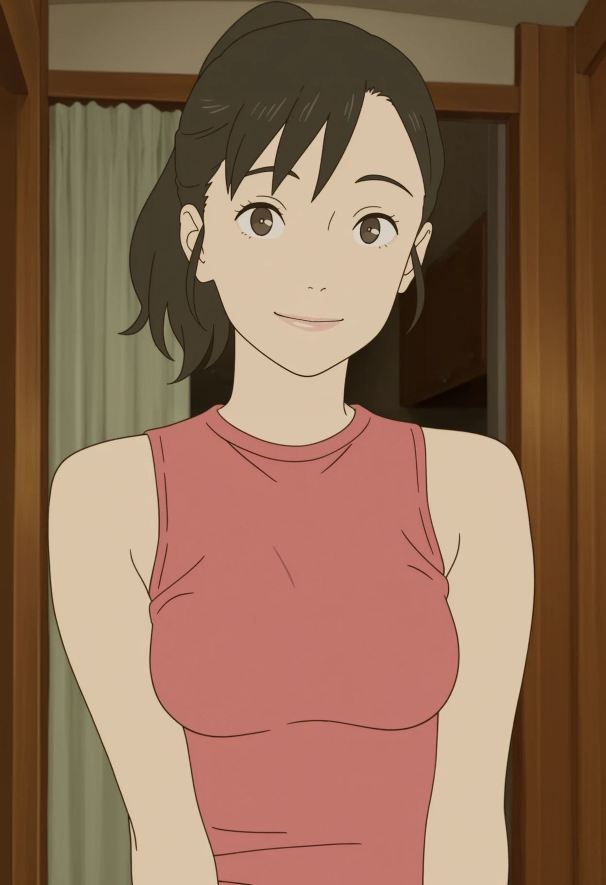 1girl,solo,anime coloring,mm,brown hair,ponytail,brown eyes,medium breasts