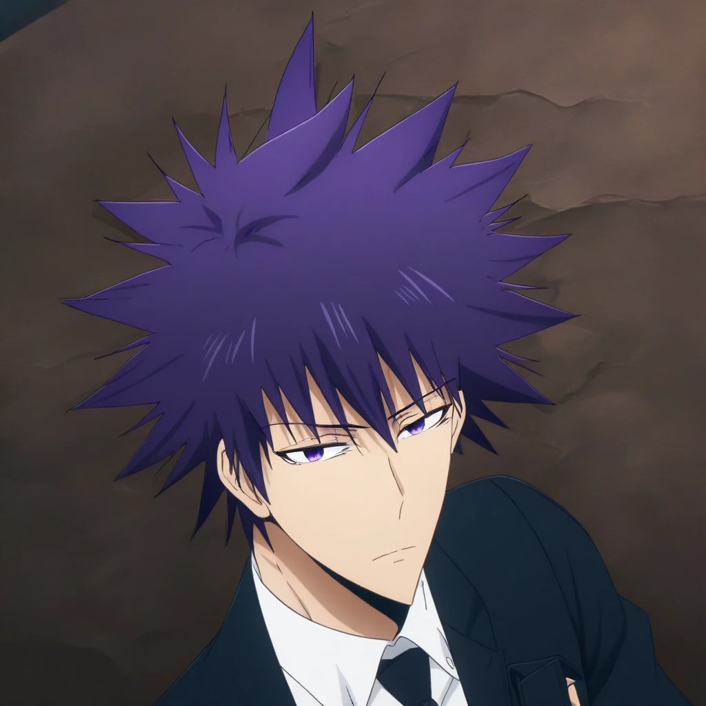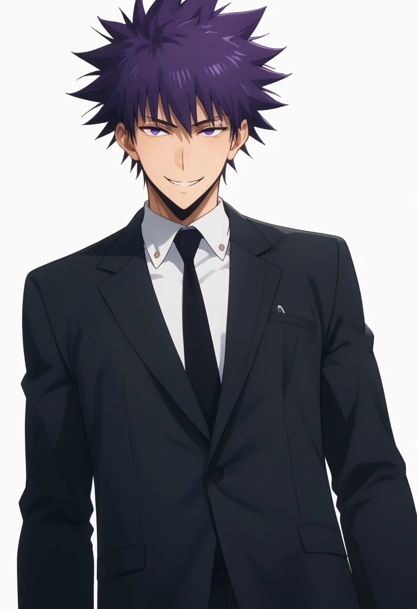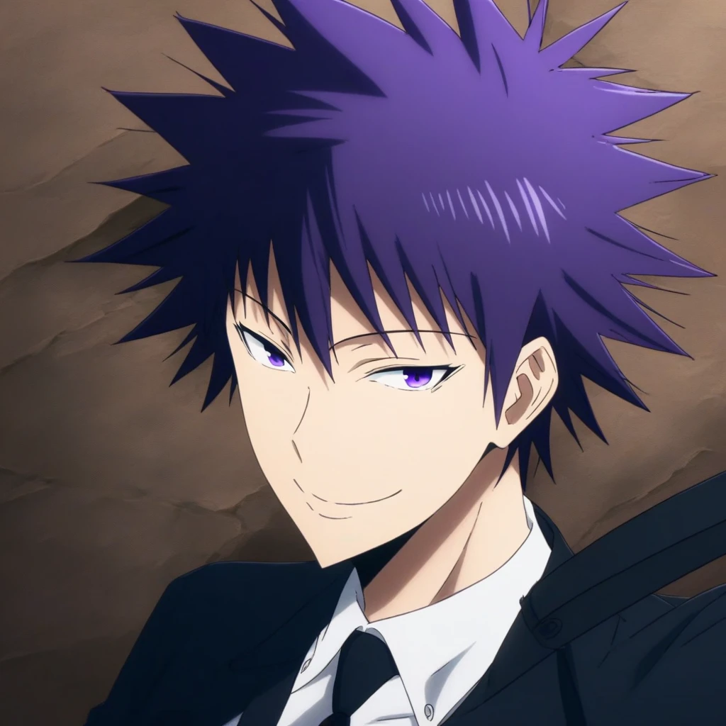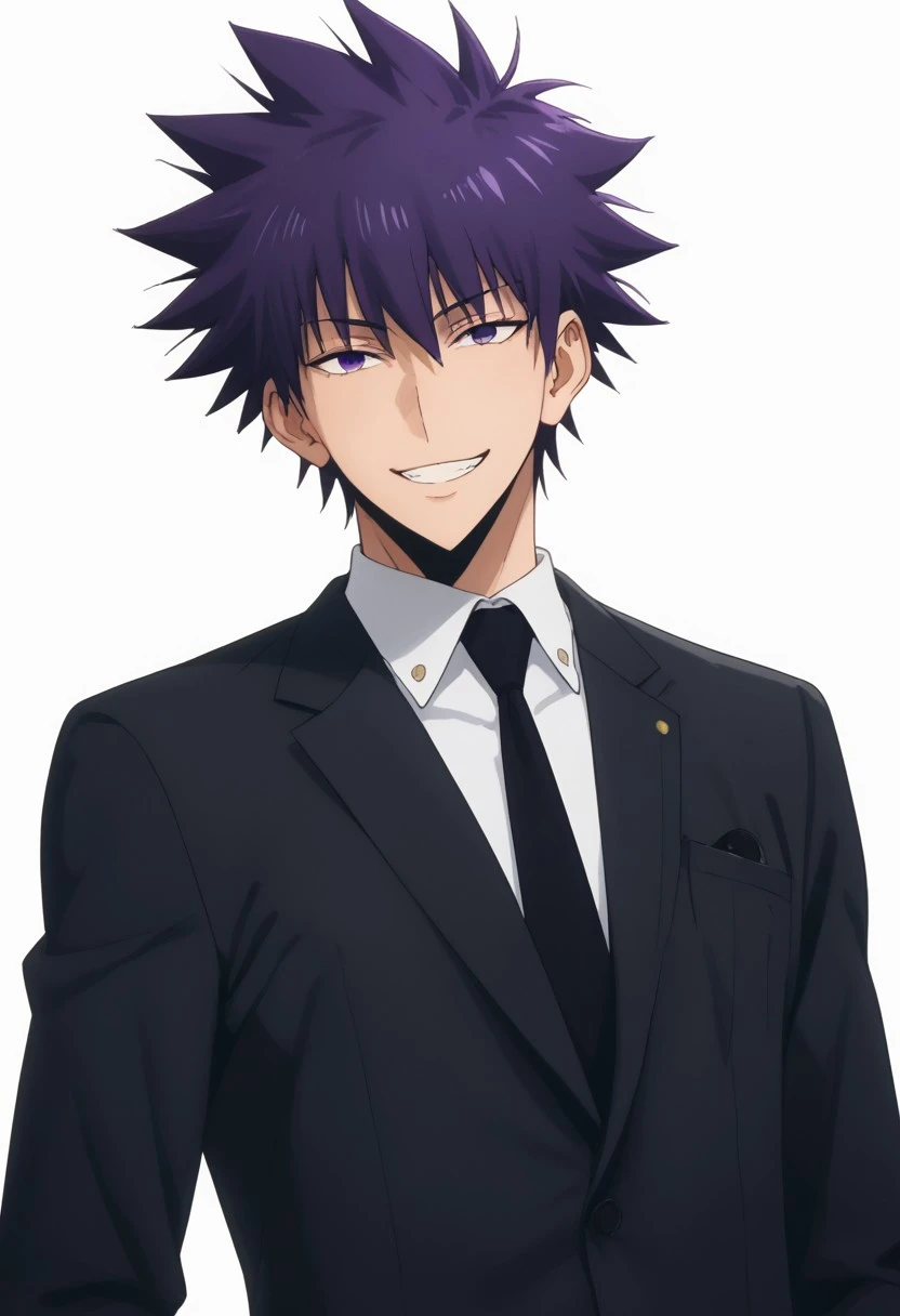 spiked hair, anime, Sadistic smile, kantaeshik, Poisoned, Smile, Black necktie, purple hair, KangTaeshik