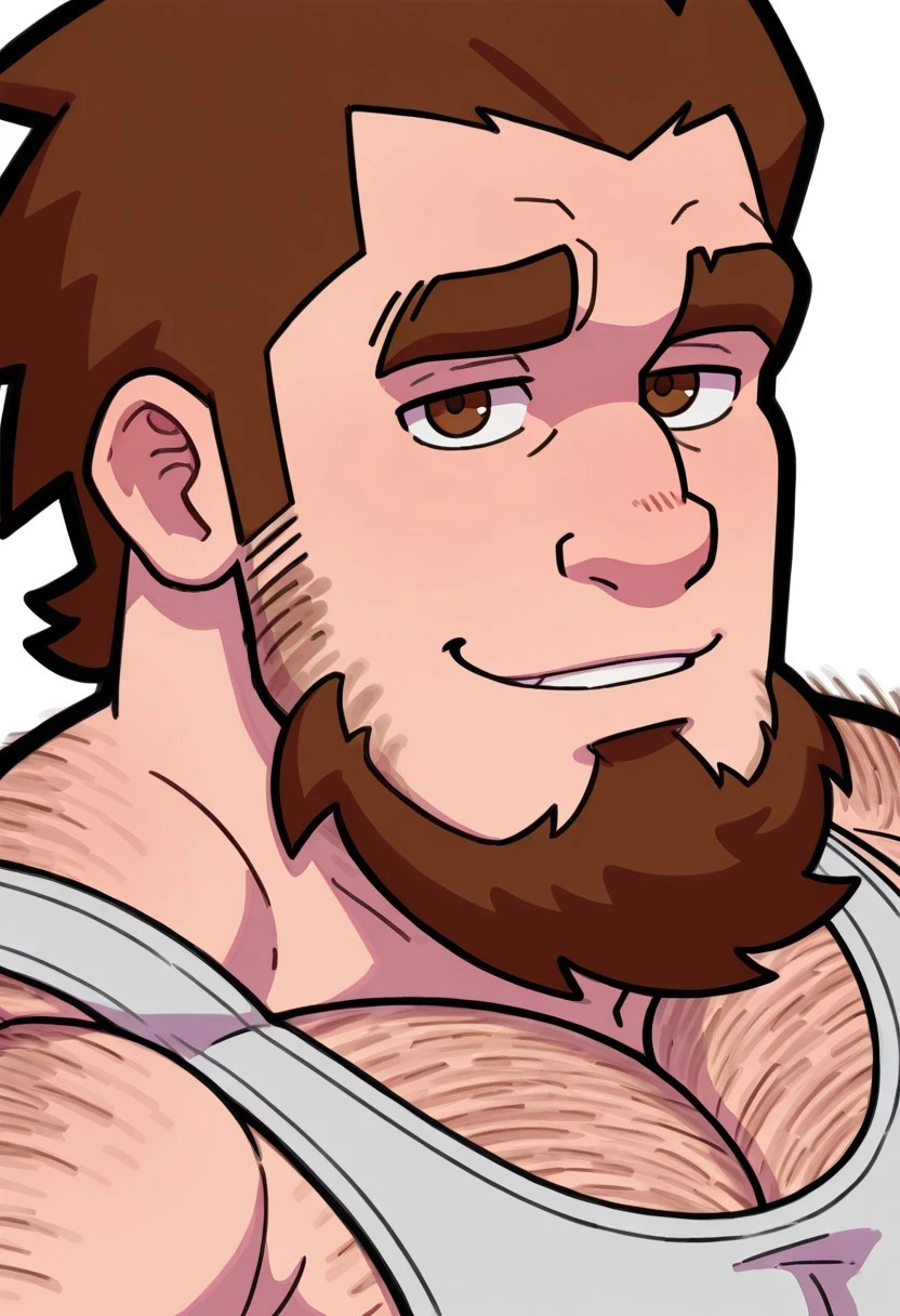 Promps: Chad40, brown hair, brown eyes, facial hair, beard, muscular, hairy body, chest hair,