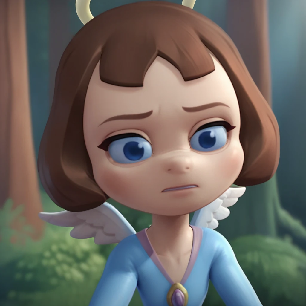 hopevt, 1girl, solo, brown hair, short hair, blue eyes, halo,