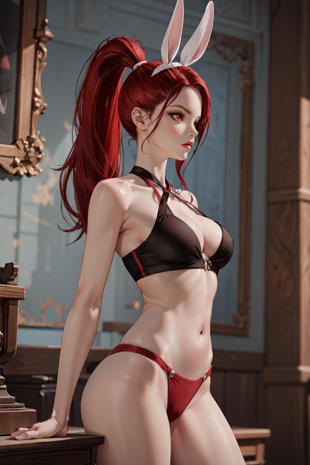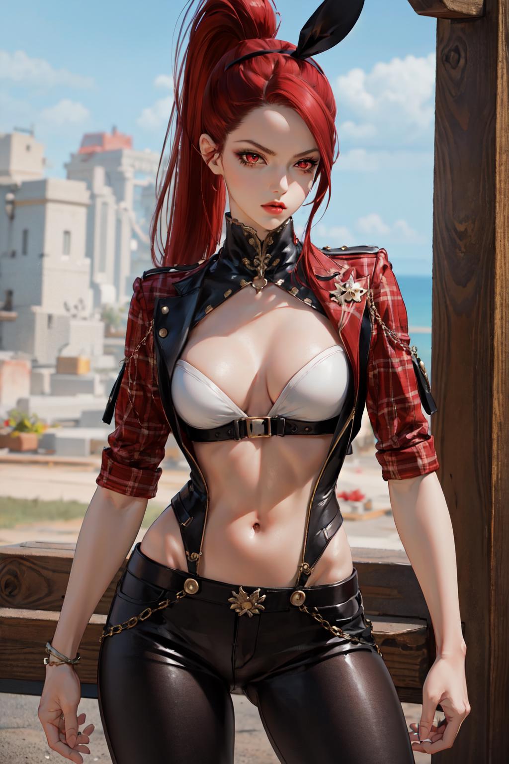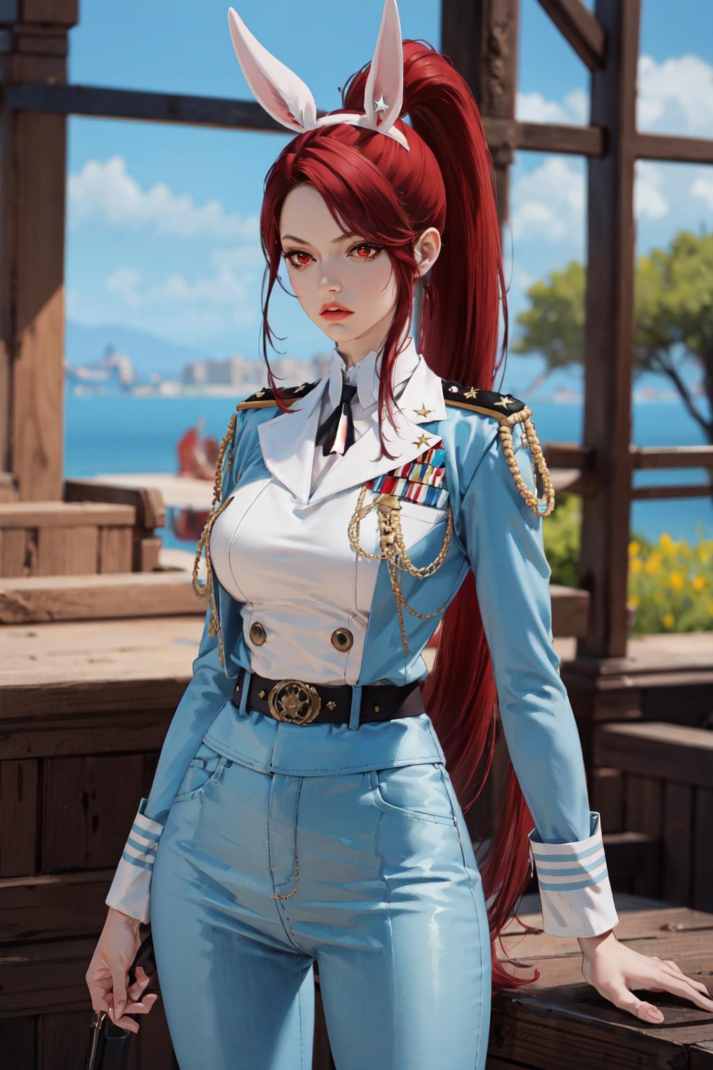 Triggers: gunslinger, red hair, red eyes, ponytail