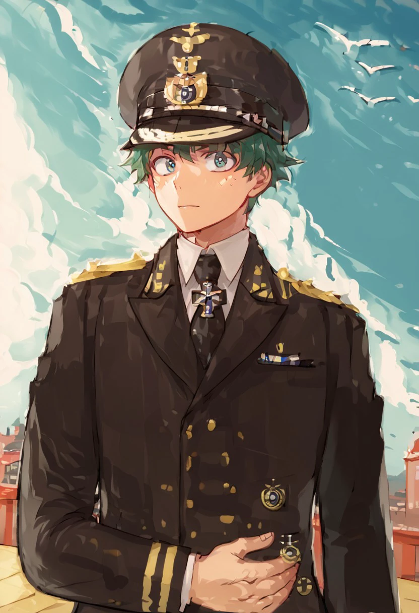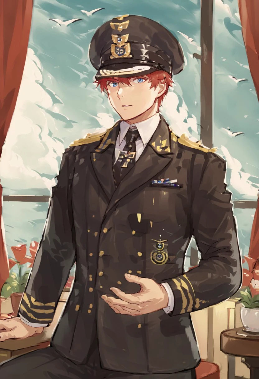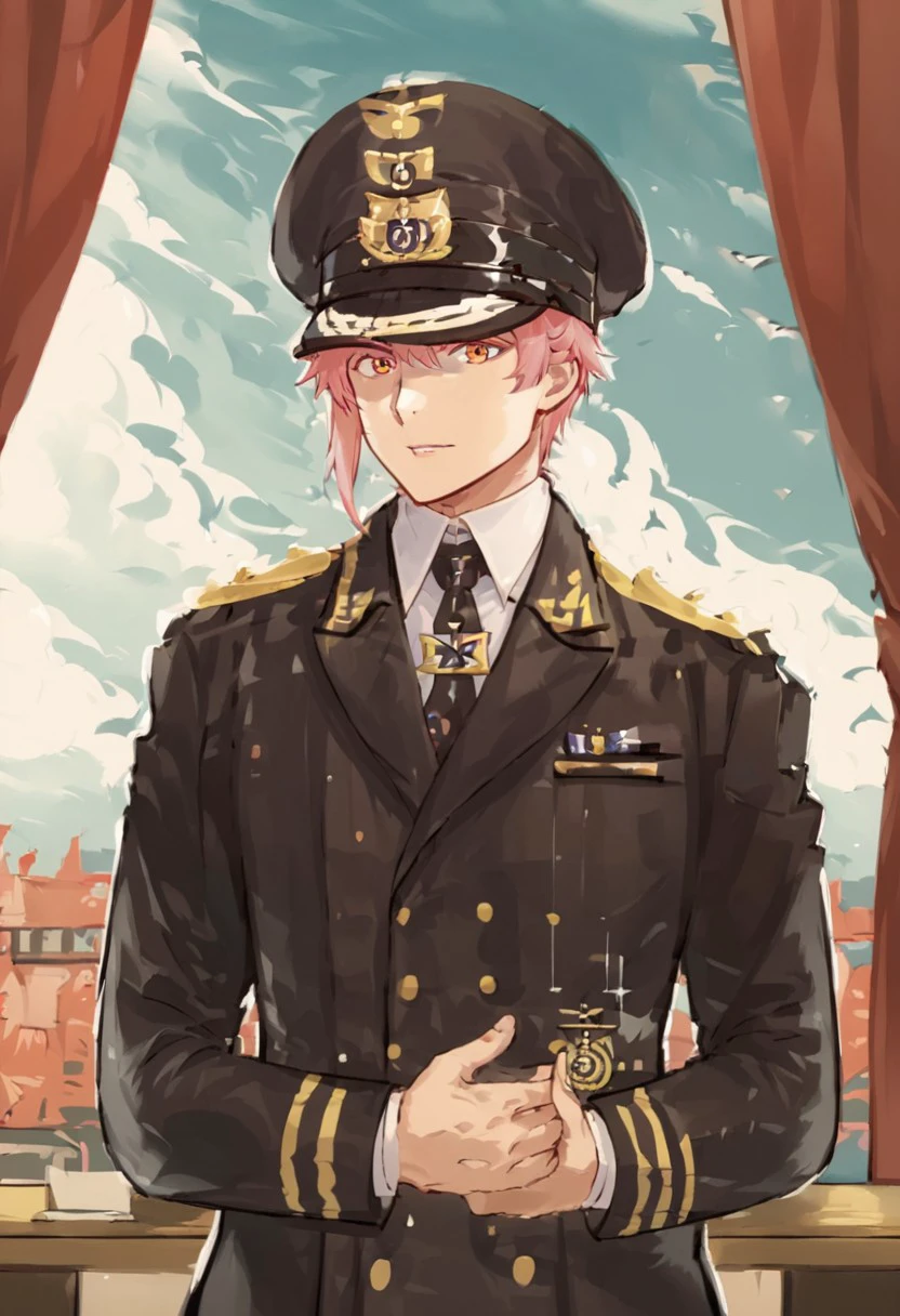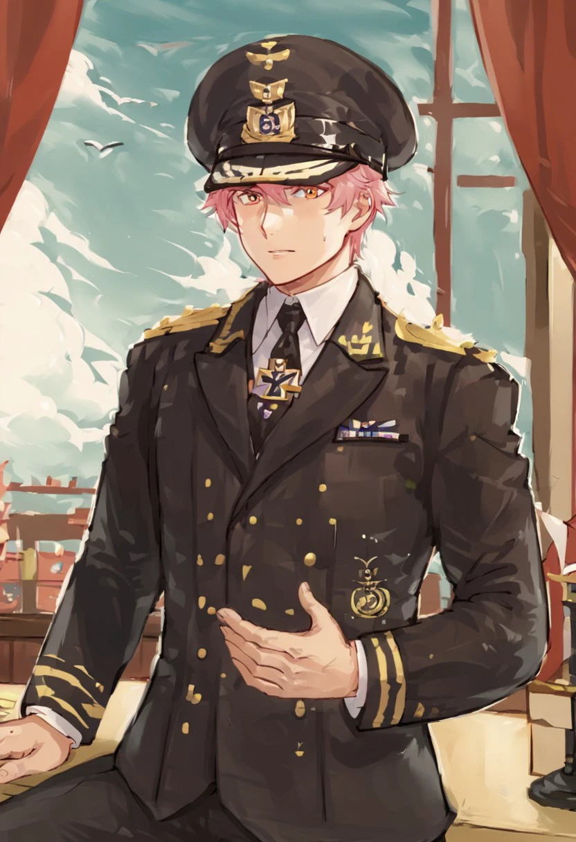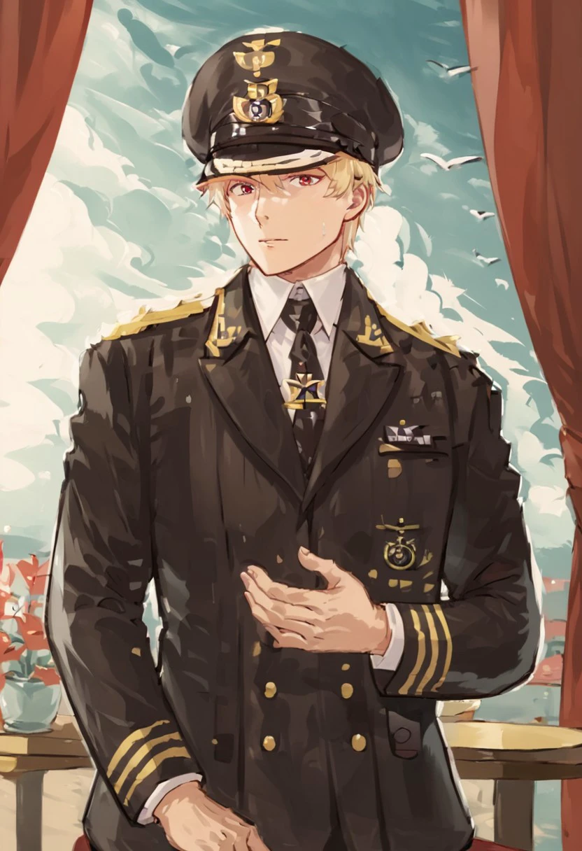 Navy uniform, peaked cap, necktie, short hair, male focus, iron cross, military,Twisted Bullion,Shoulder Board golden Epaulettes,