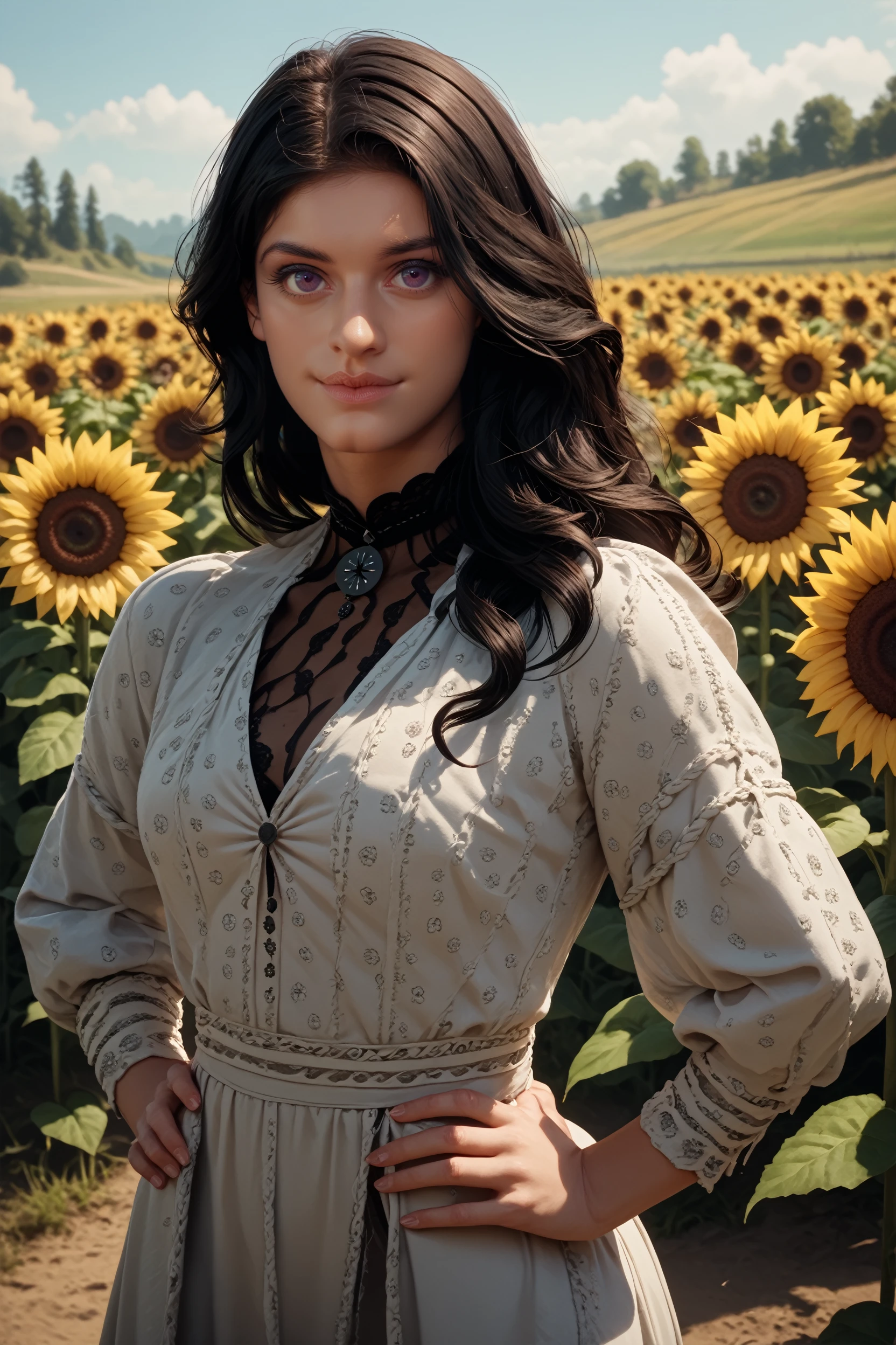 TWTVYennefer, 1girl, black hair, purple eyes, long hair