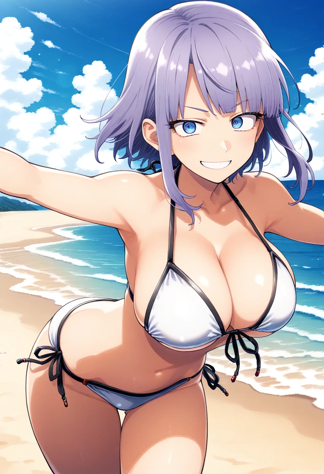 costume3: white bikini, bare arms,