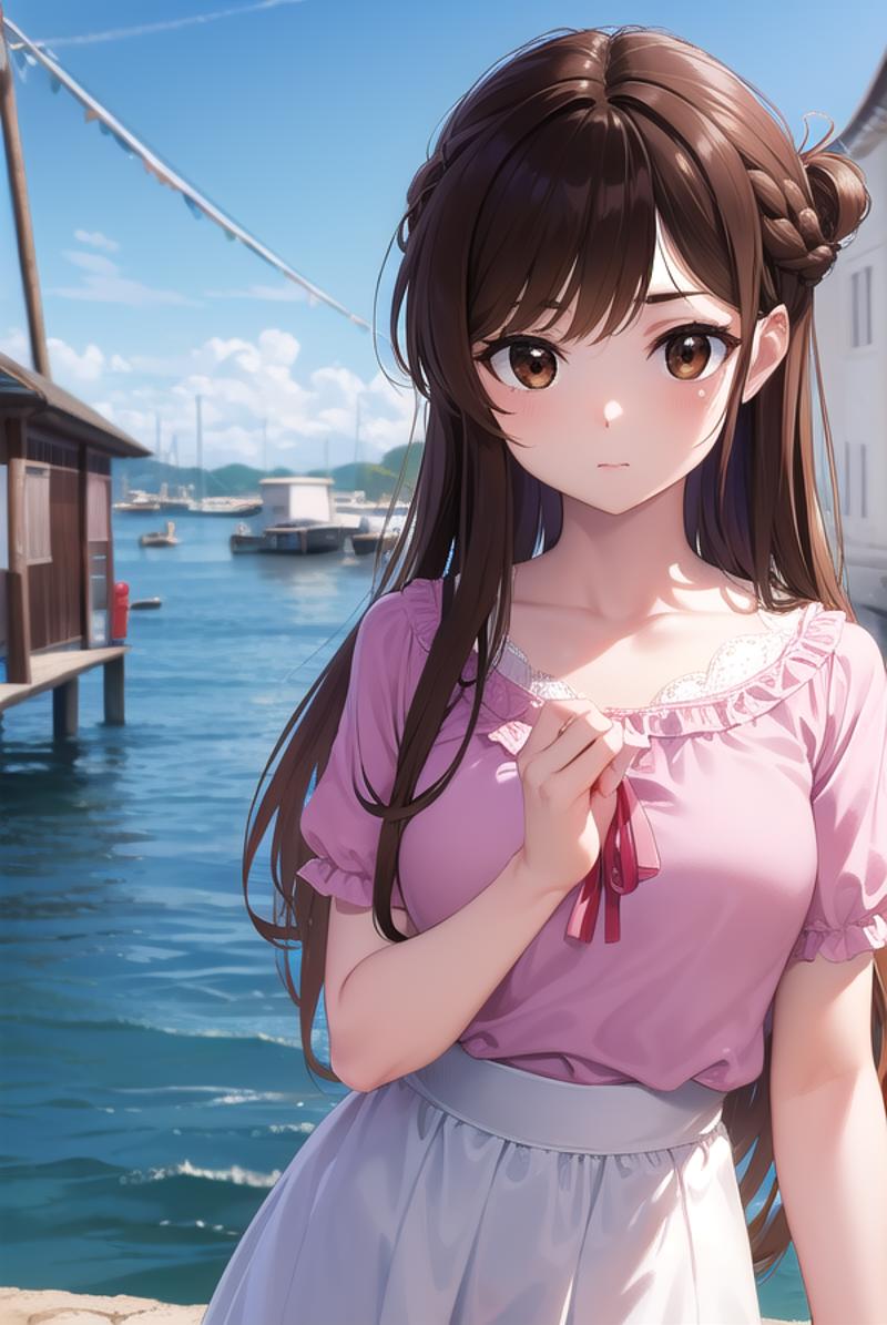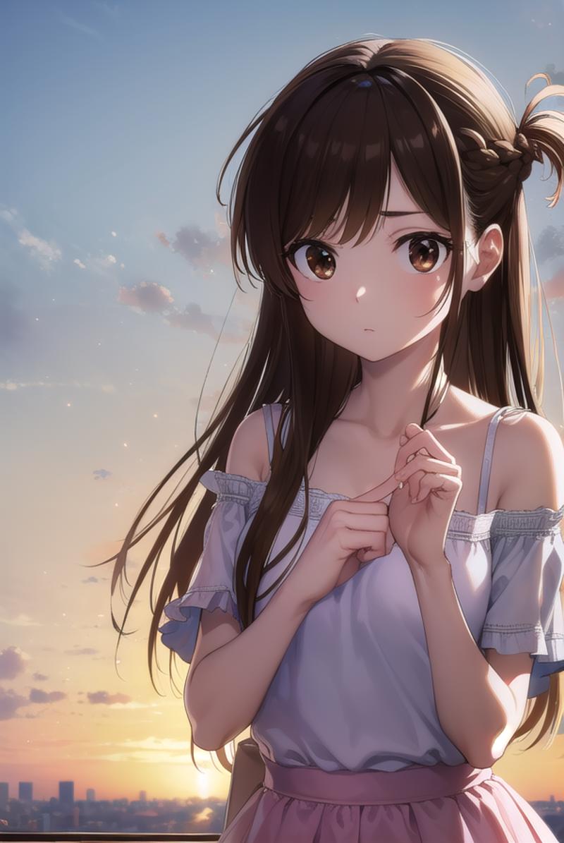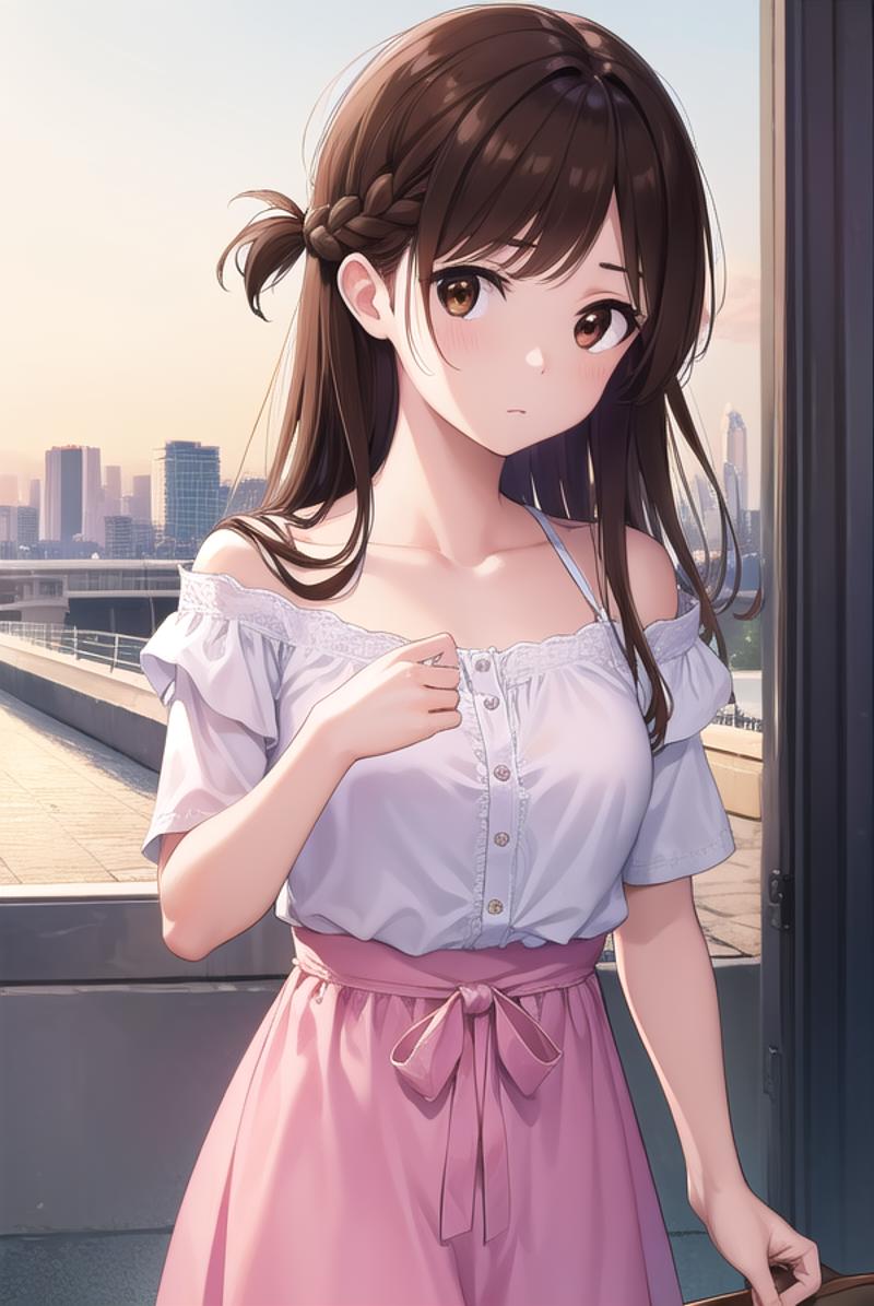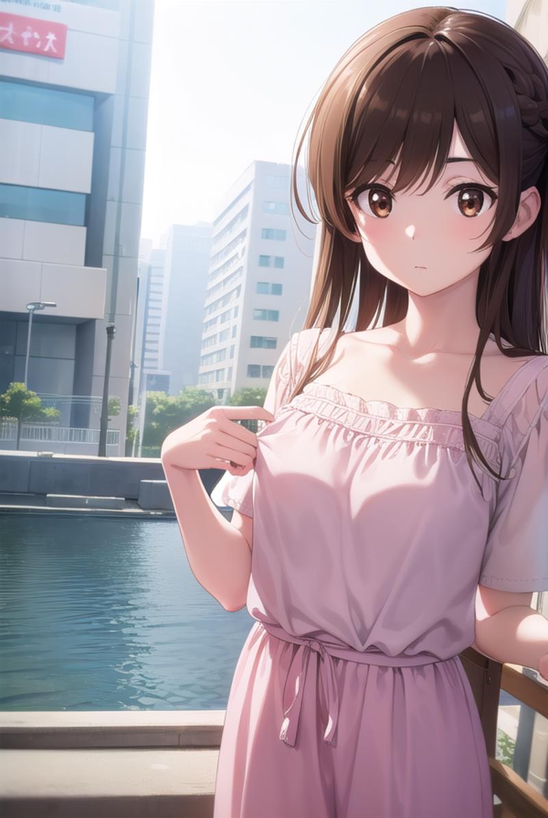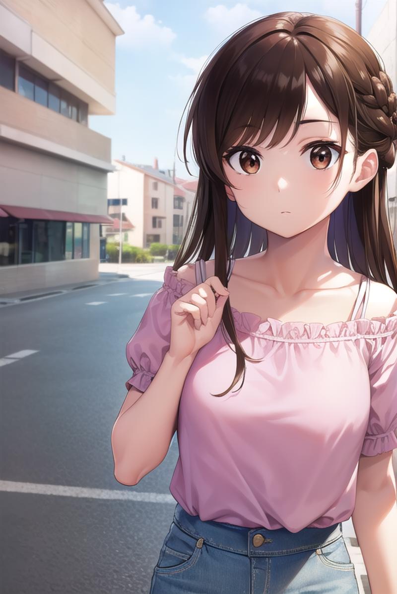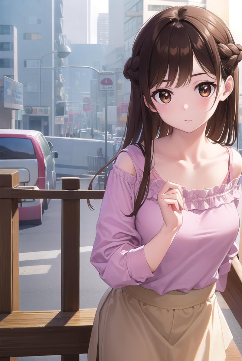 mizuhara chizuru, long hair, brown hair, (brown eyes:1.7), (one side up:1.5), bangs, braid, hair braid,