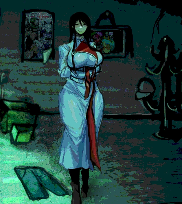 mrs, 1girl, ((white skin)), pale skin, very black hair, loose hair, long hair, hair between hair, black eyes, asian eyes, narrowed eyes, mature Woman, thick body, (huge breasts), very large breasts, voluptous body, curvy, wide hips, very tall, tall woman, White Jacket