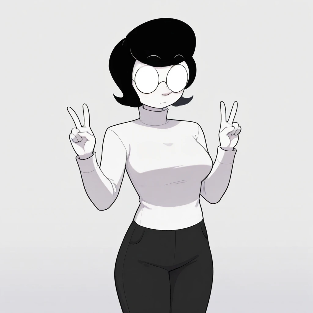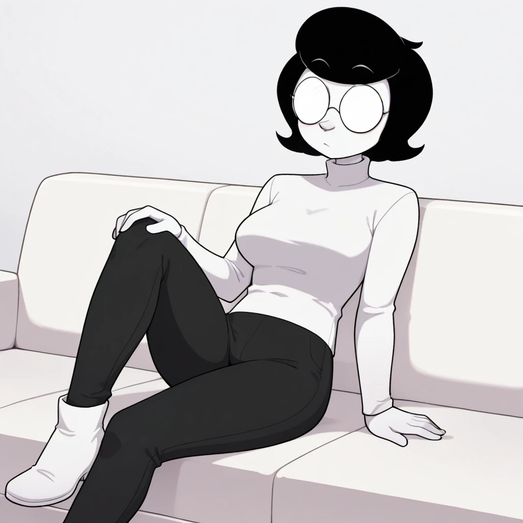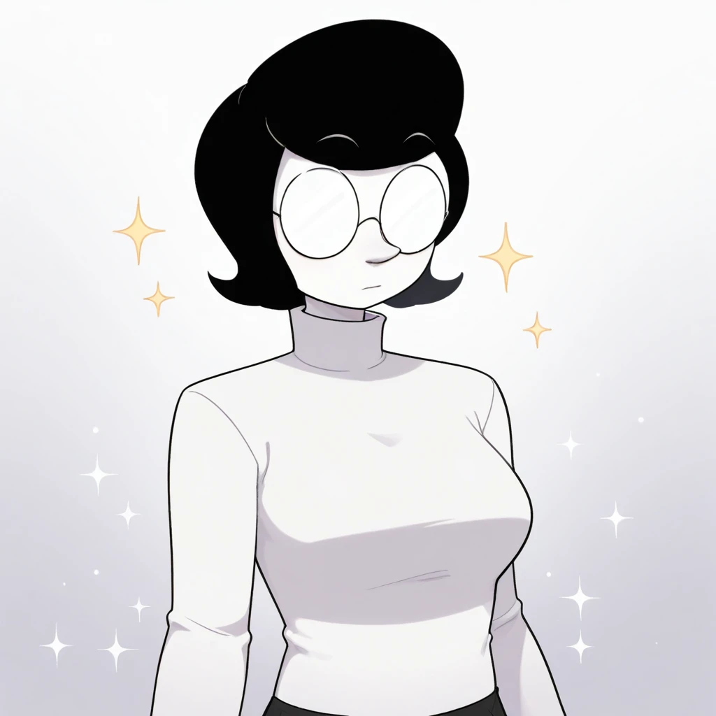SusanHeffley, 1girl, solo, short hair, black hair, white skin, round eyewear, opaque glasses,