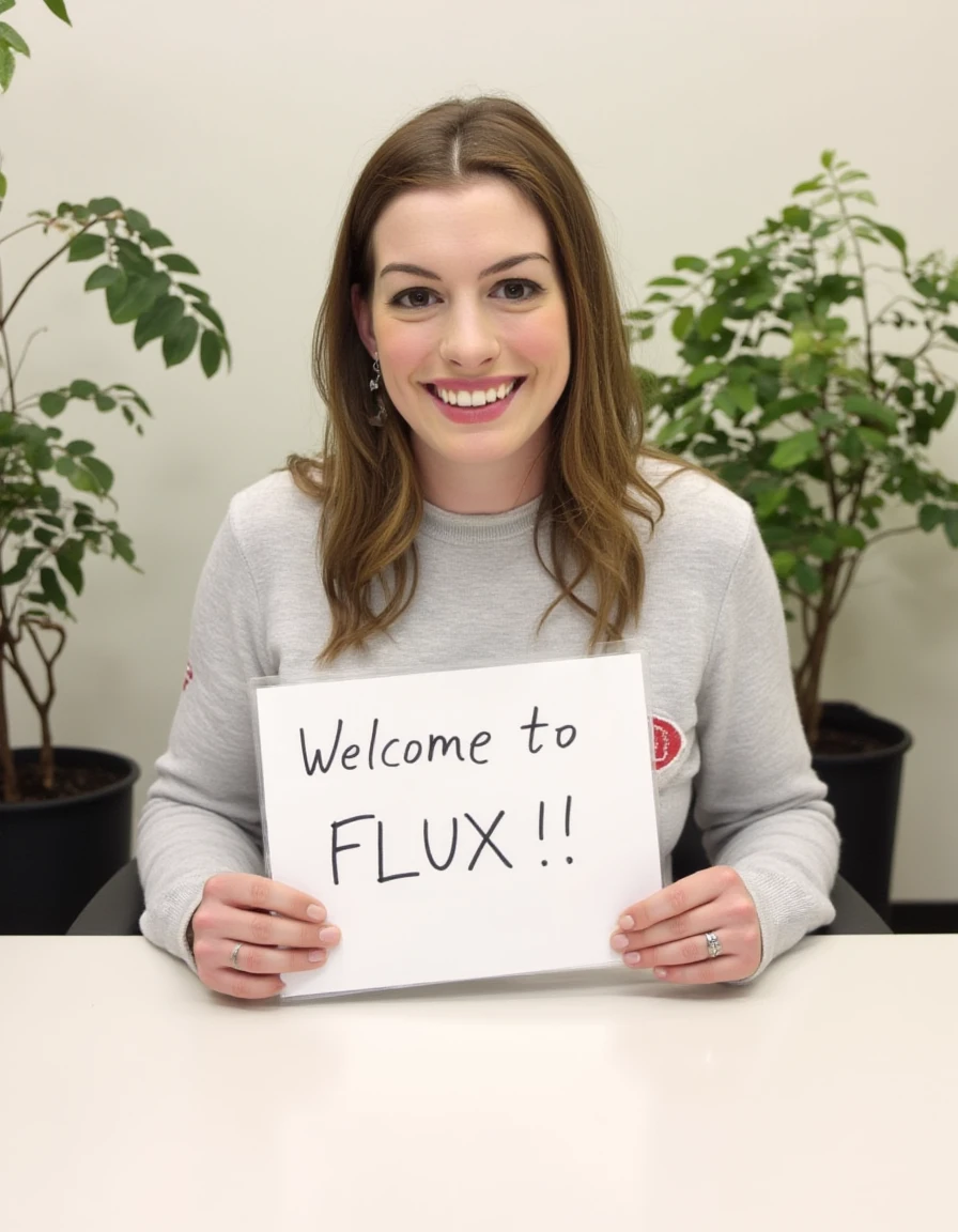 Trained on FLUX.1 [dev] with 80 photos of Anne Hathaway with detailed GPT-4 captions. Tested on FLUX 1.dev (full) and FLUX fp8 and FLUX nf4 ! Use around strength 0.8-1.0. Distilled CFG around 1-4 and CFG 1.0 (without negative prompt). Clipskip 1. Can be used for example as follows: