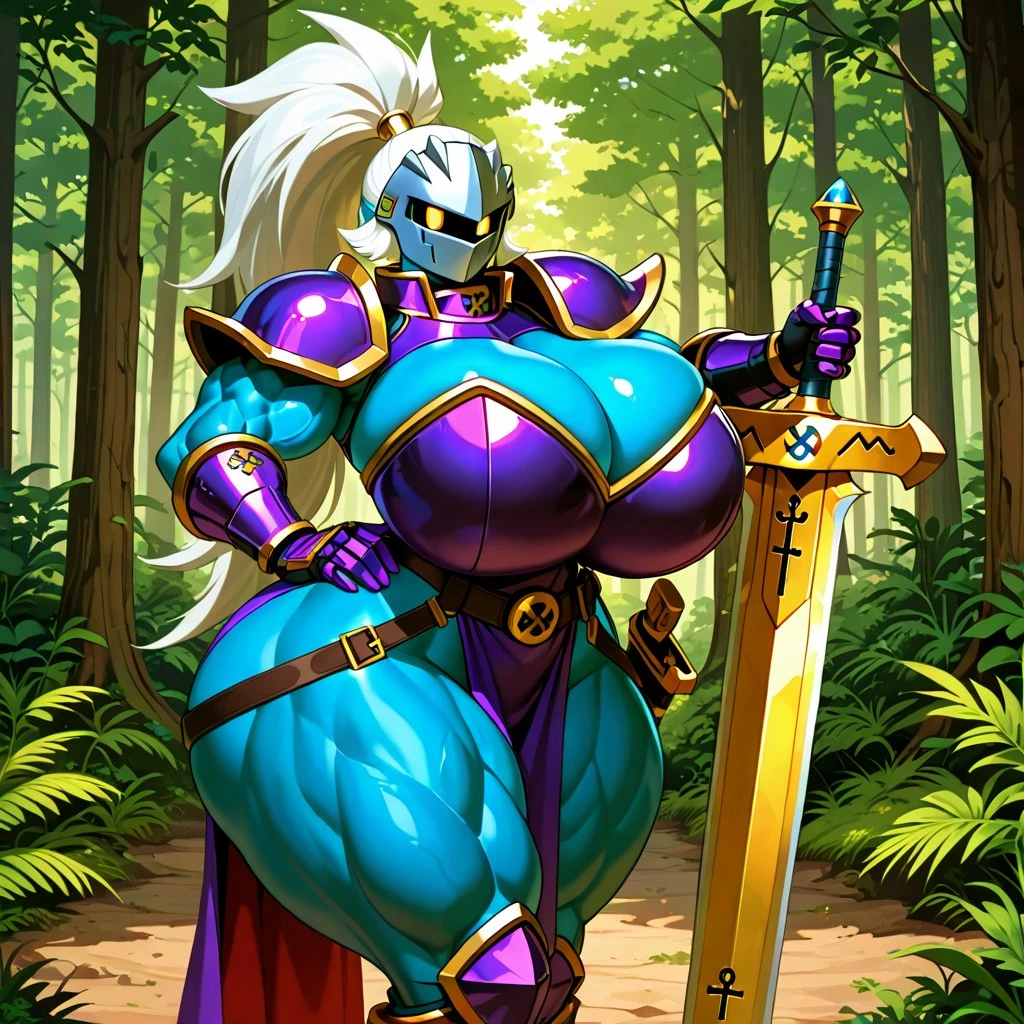 pauldrons, purple metal shoes, gauntlets, purple armor,