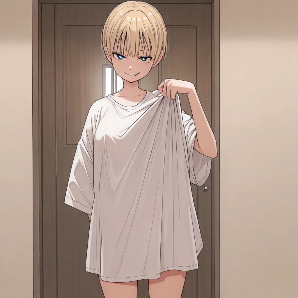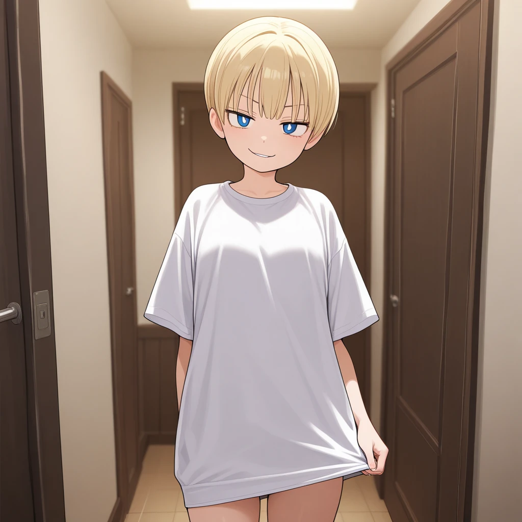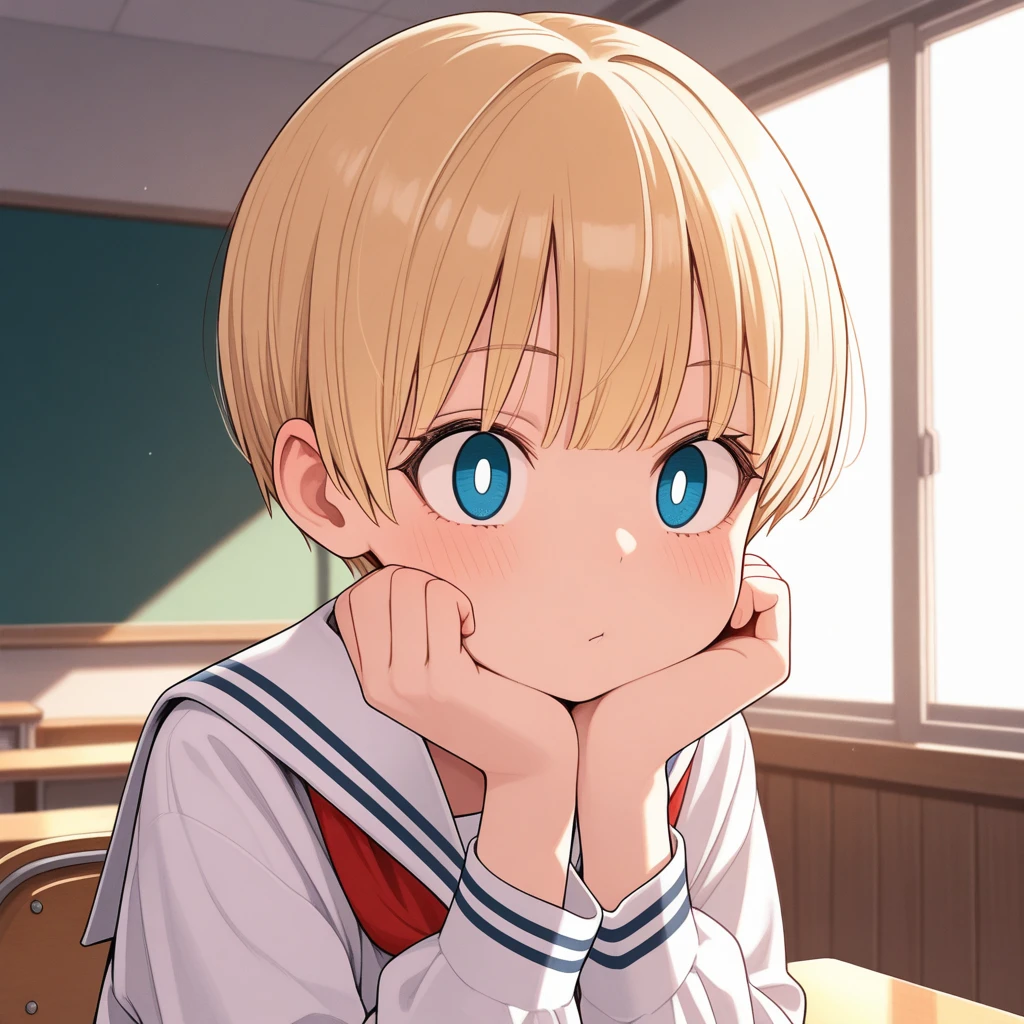1girl, short hair, blonde hair, blue eyes,white pupils, serafuku, white_sailor_collar