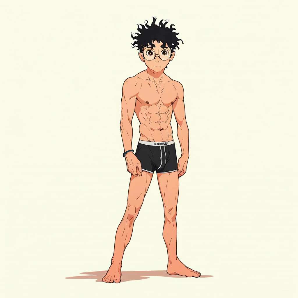 0karun, male focus, glasses, black hair, brown eyes, messy hair,
