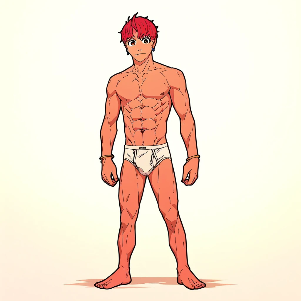 Jij1, male focus, red hair, jewelry, earrings, brown eyes, short hair,
